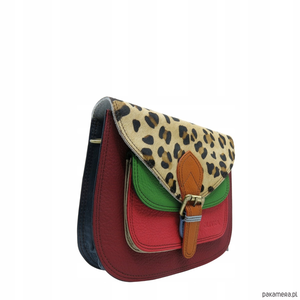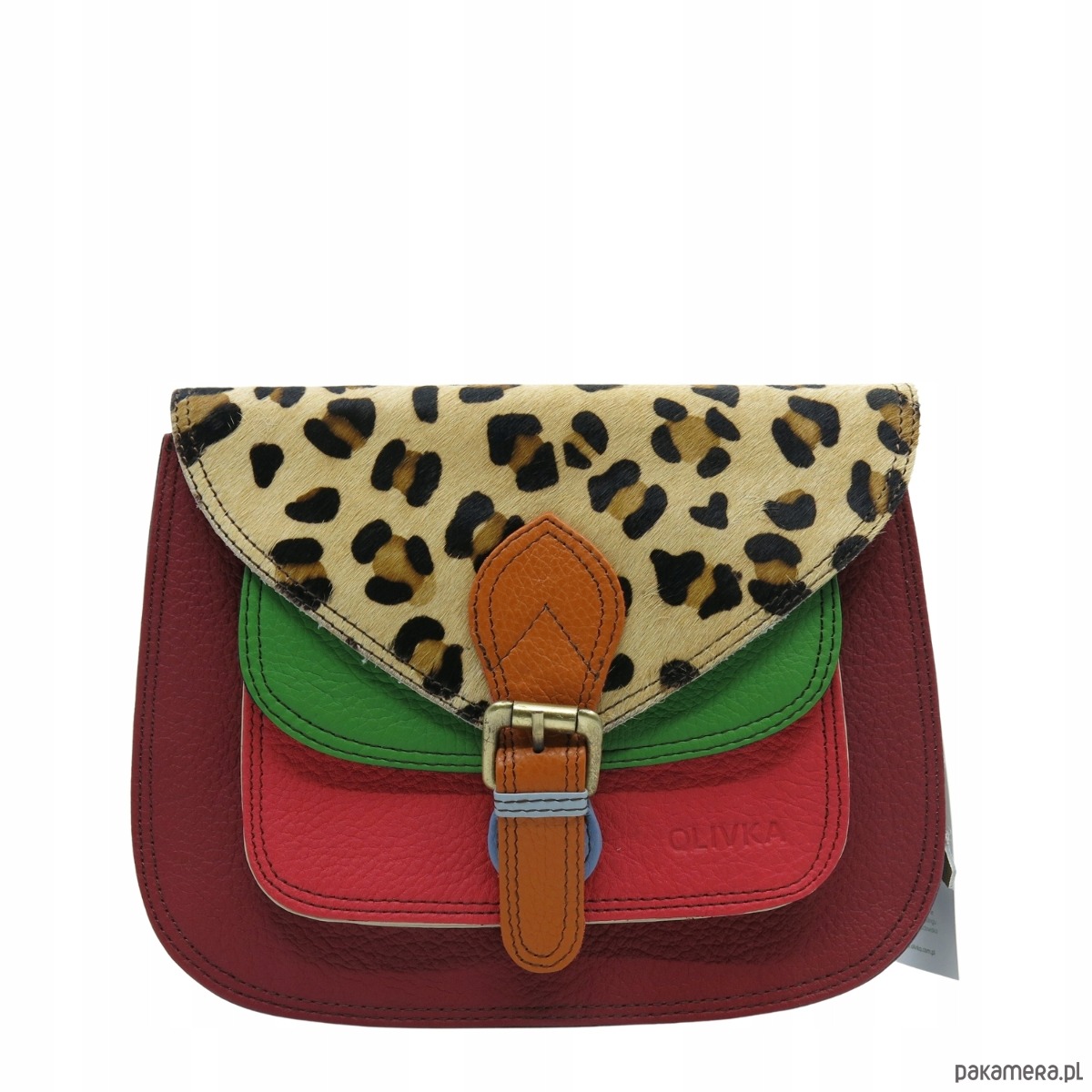 Torebka listonoszka elegancka regulowany pasek skórzana kolorowa OLIVKA