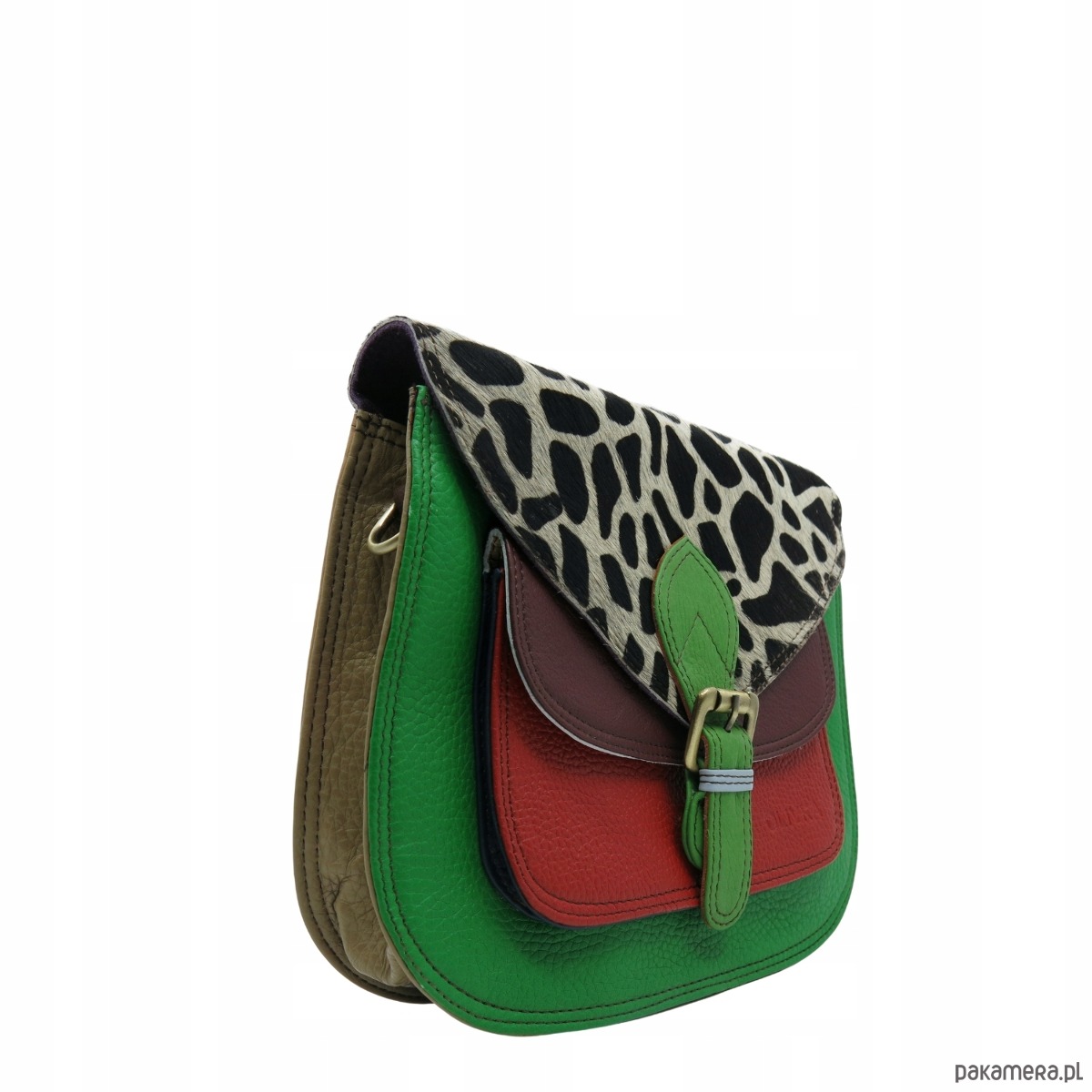Torebka listonoszka elegancka regulowany pasek skórzana kolorowa OLIVKA