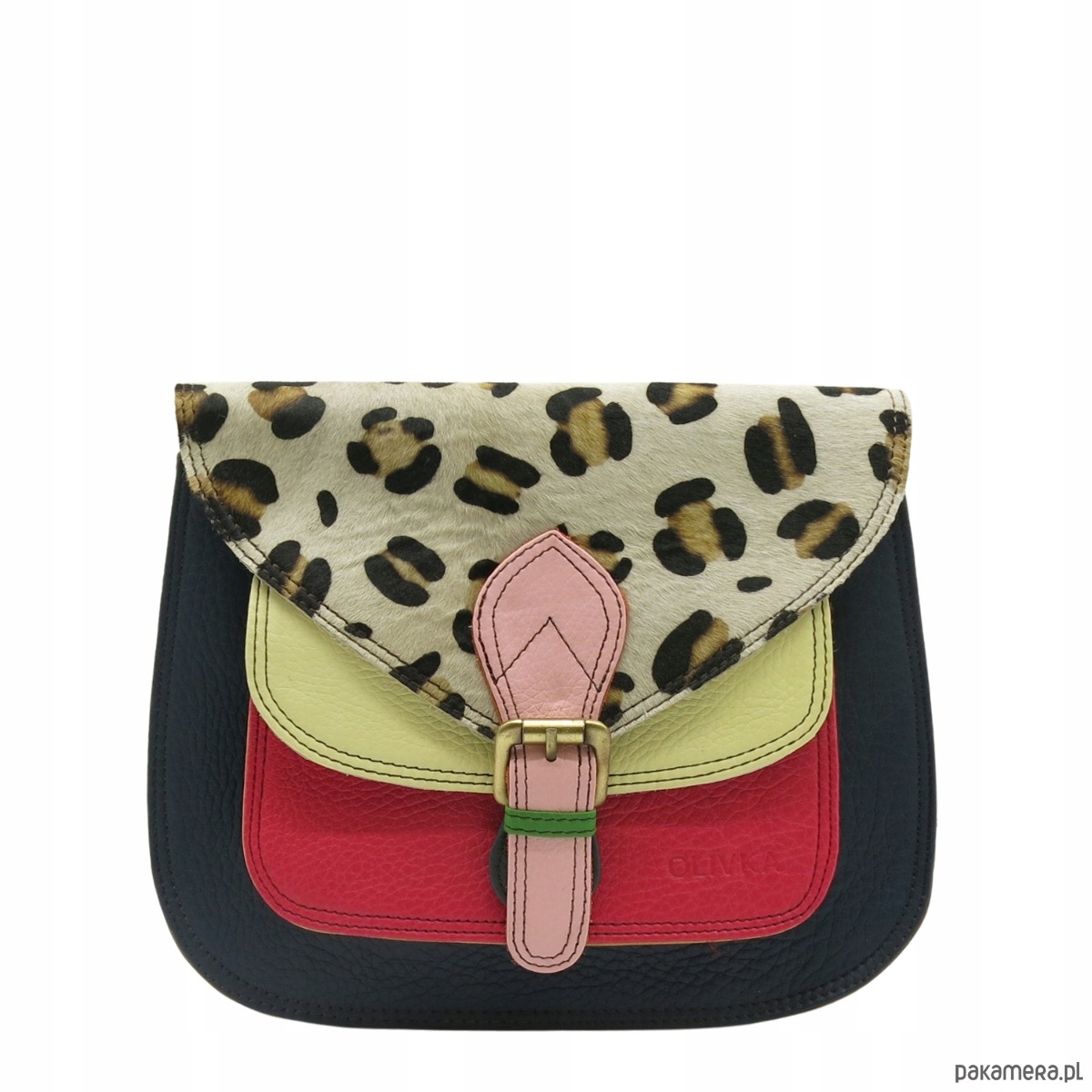 Torebka listonoszka elegancka regulowany pasek skórzana kolorowa OLIVKA