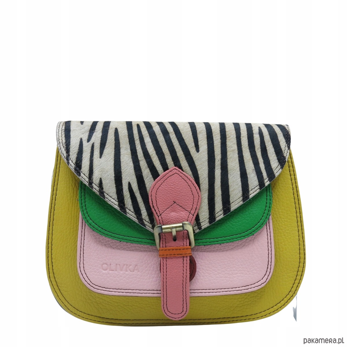 Torebka listonoszka elegancka regulowany pasek skórzana kolorowa OLIVKA
