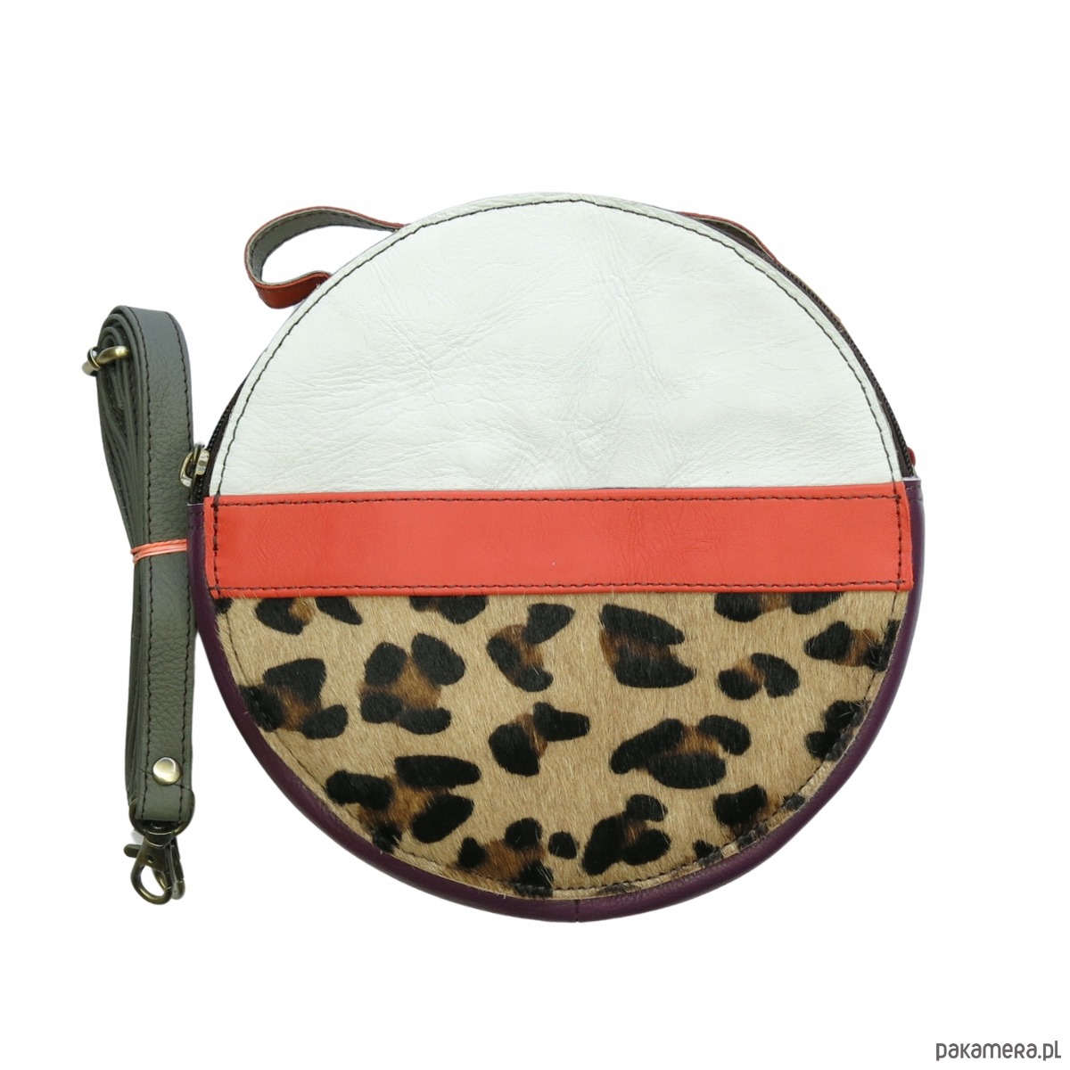 Ta dwustronna, oryginalna torebka w kształcie koła, jest absolutnie unikalna. Bez względu na sposób noszenia, czy to w dłoni, czy na długim pasku, z pewnością przyciągnie uwagę wszystkich wokół Ciebie. Nigdzie nie znajdziesz drugiej takiej samej!