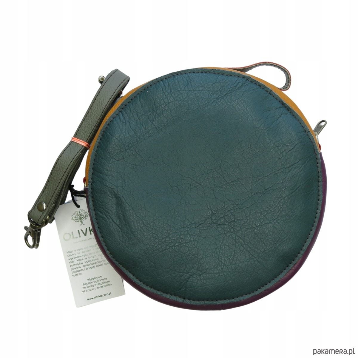 Torebka listonoszka kółko skórzana skóra naturalna elegancka eko OLIVKA