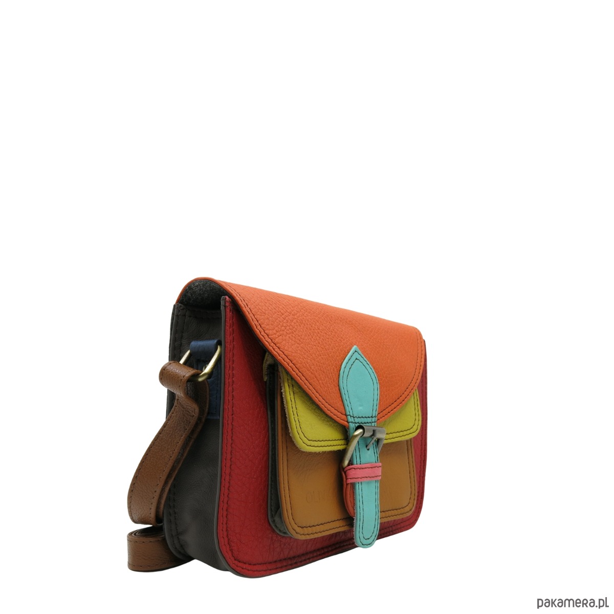Torebka listonoszka oryginalna skórzana kolorowa elegancka pasek eko OLIVKA