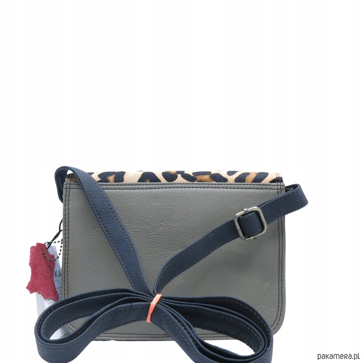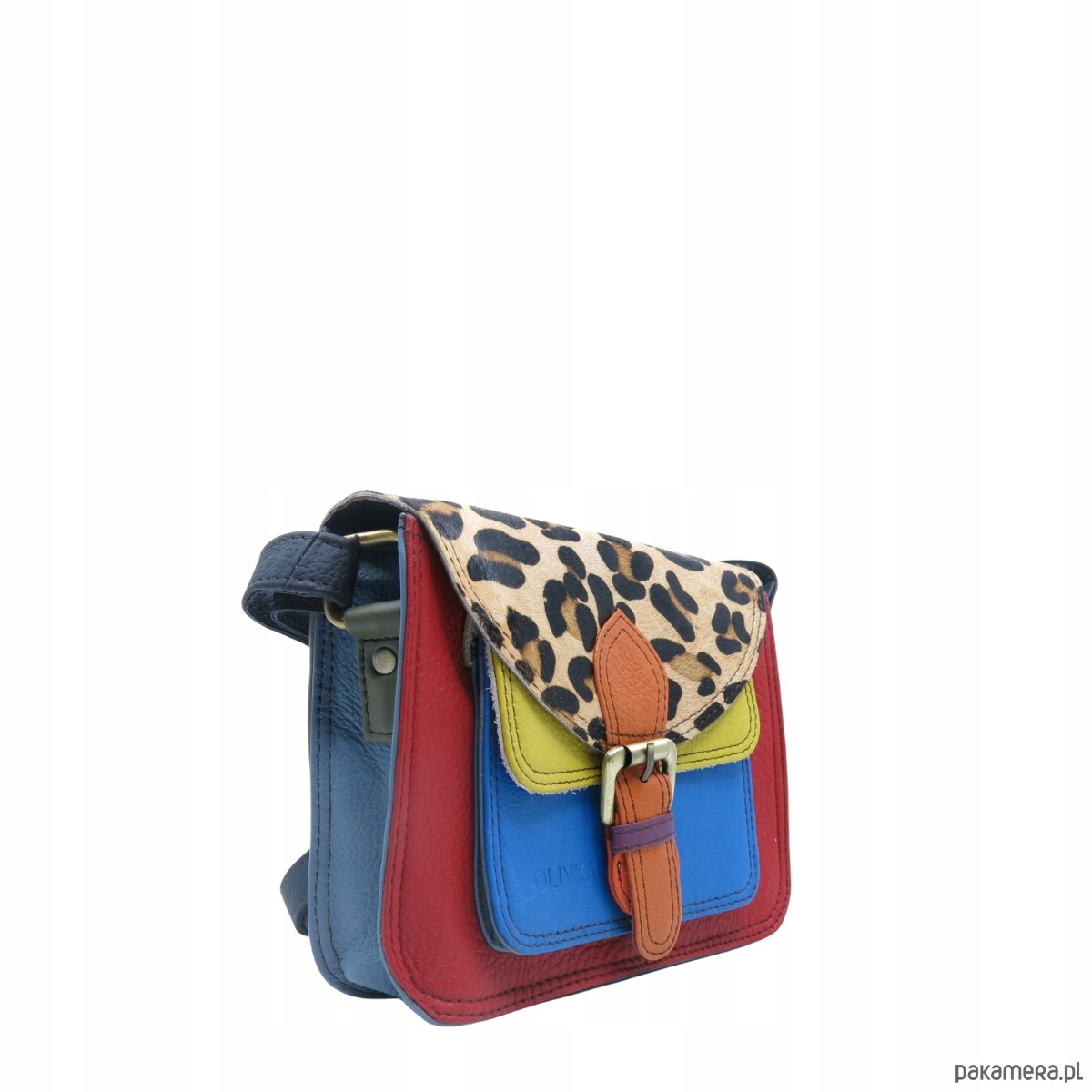 Torebka listonoszka oryginalna skórzana kolorowa elegancka pasek eko OLIVKA
