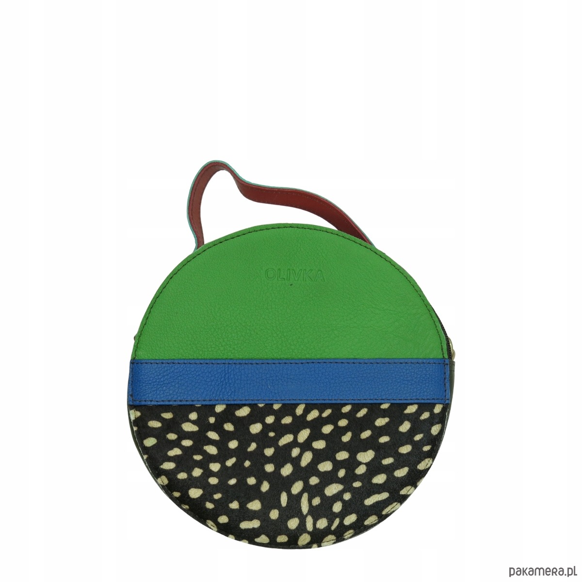 Ta dwustronna, oryginalna torebka w kształcie koła, jest absolutnie unikalna. Bez względu na sposób noszenia, czy to w dłoni, czy na długim pasku, z pewnością przyciągnie uwagę wszystkich wokół Ciebie. Nigdzie nie znajdziesz drugiej takiej samej!