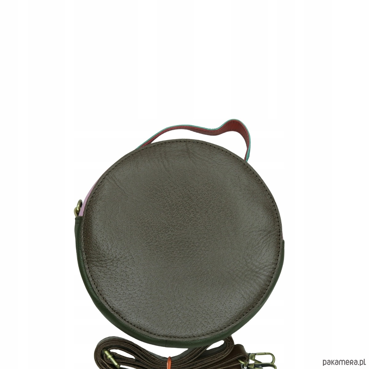 Torebka listonoszka skórzana okrągła skóra naturalna elegancka eko OLIVKA