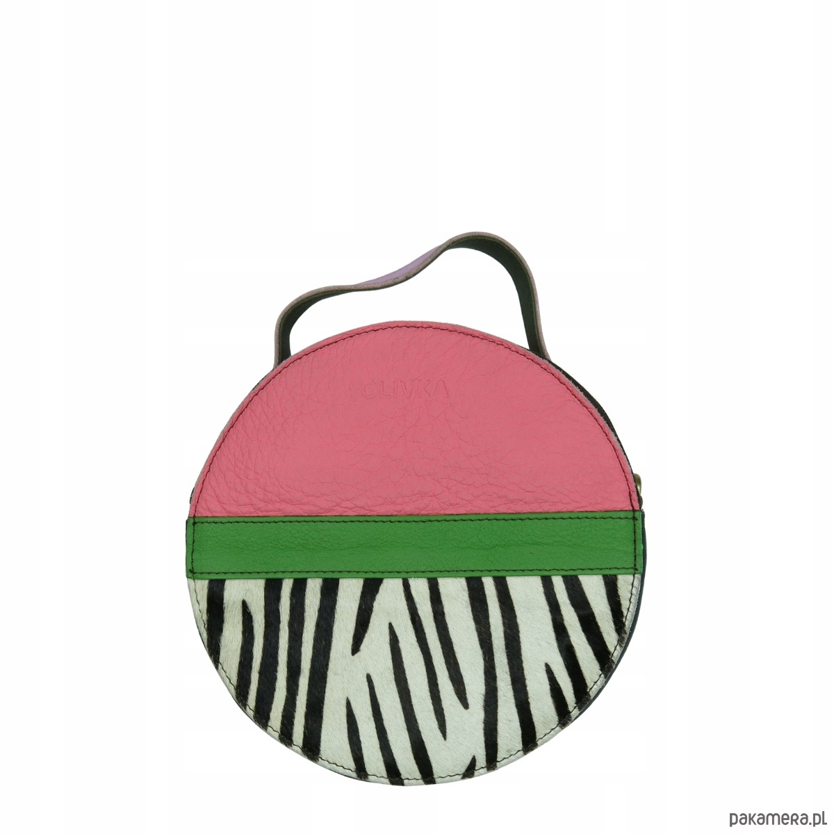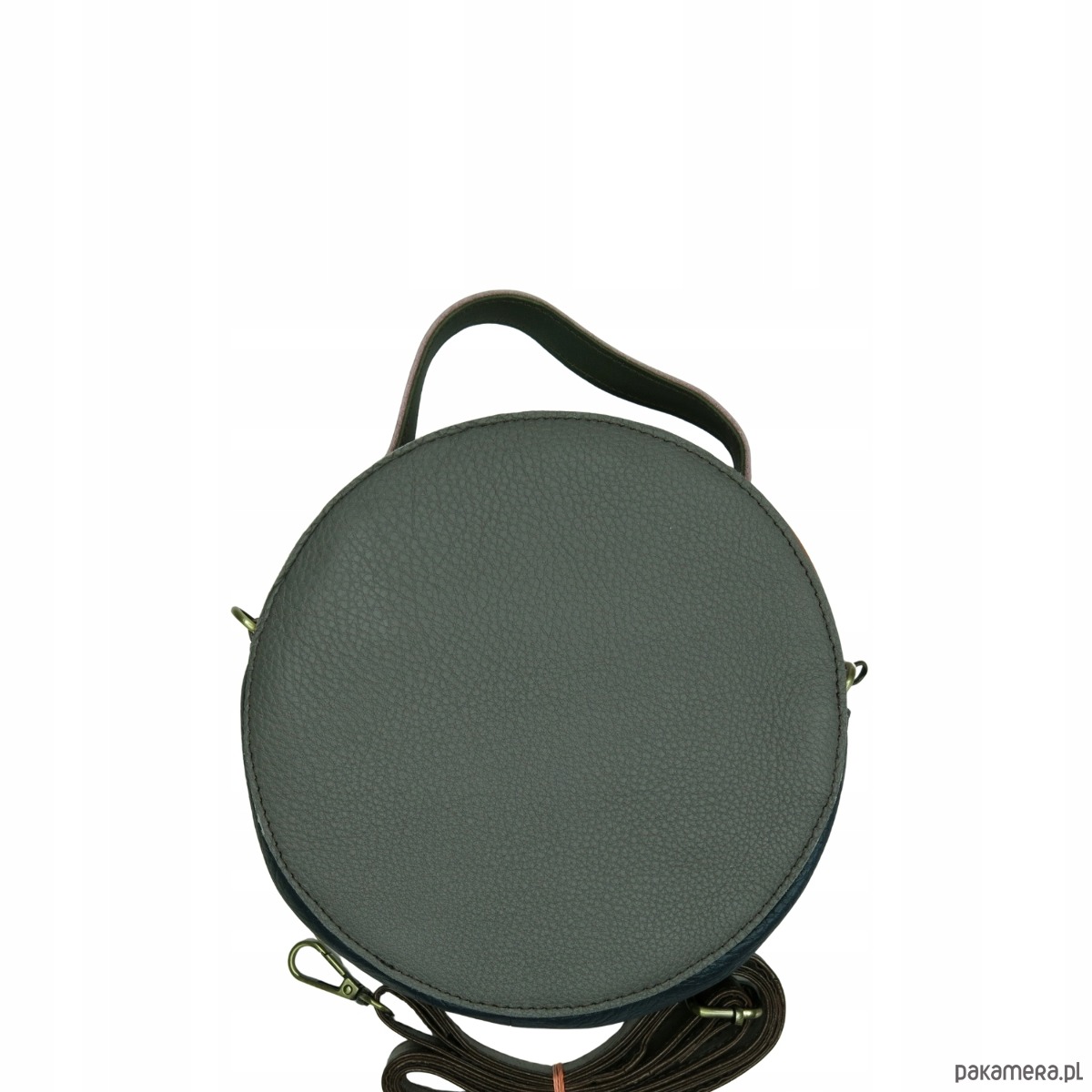 Torebka listonoszka skórzana okrągła skóra naturalna elegancka eko OLIVKA