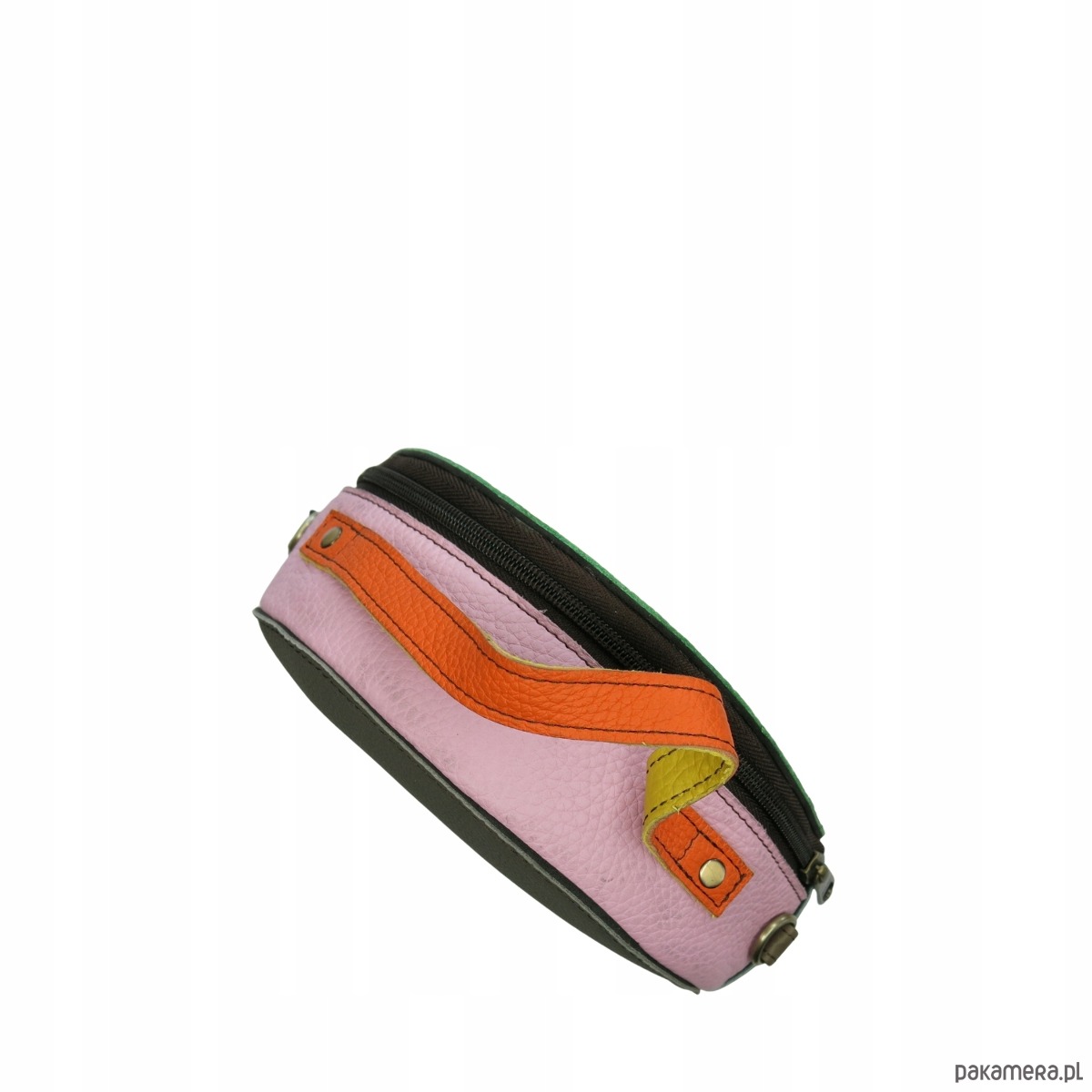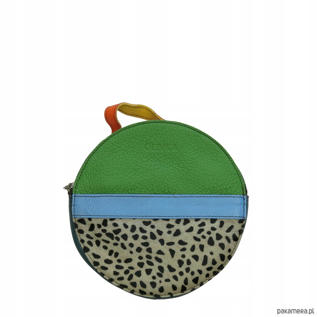 Torebka listonoszka skórzana okrągła skóra naturalna elegancka eko OLIVKA