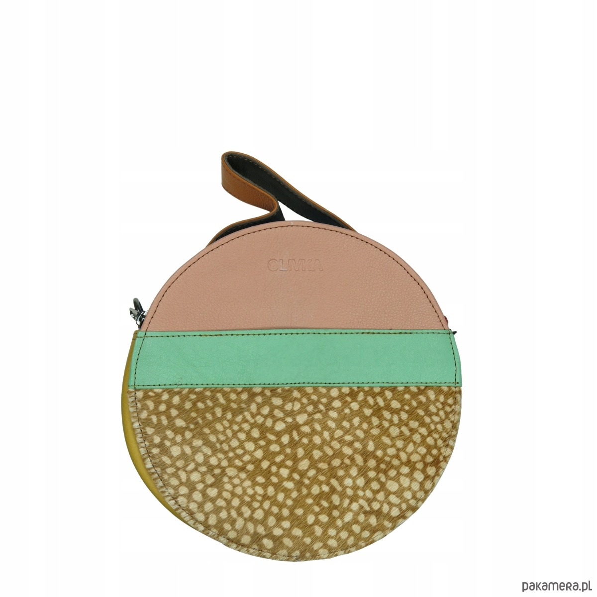 Torebka listonoszka skórzana okrągła skóra naturalna elegancka eko OLIVKA