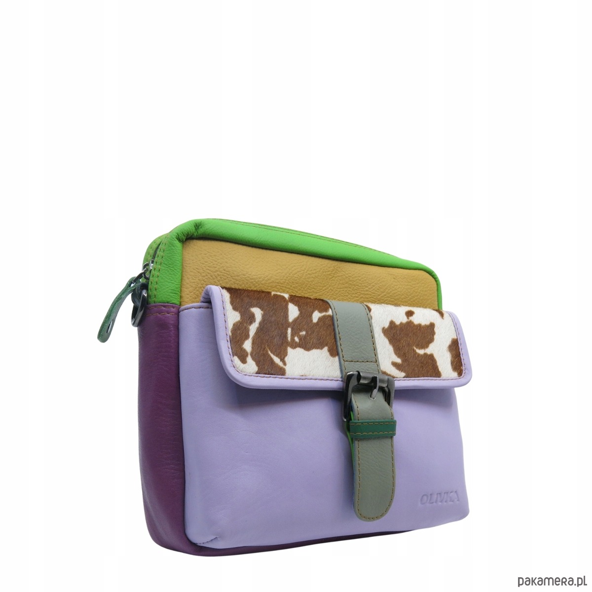 Torebka listonoszka unikatowa skórzana skóra naturalna pojemna OLIVKA