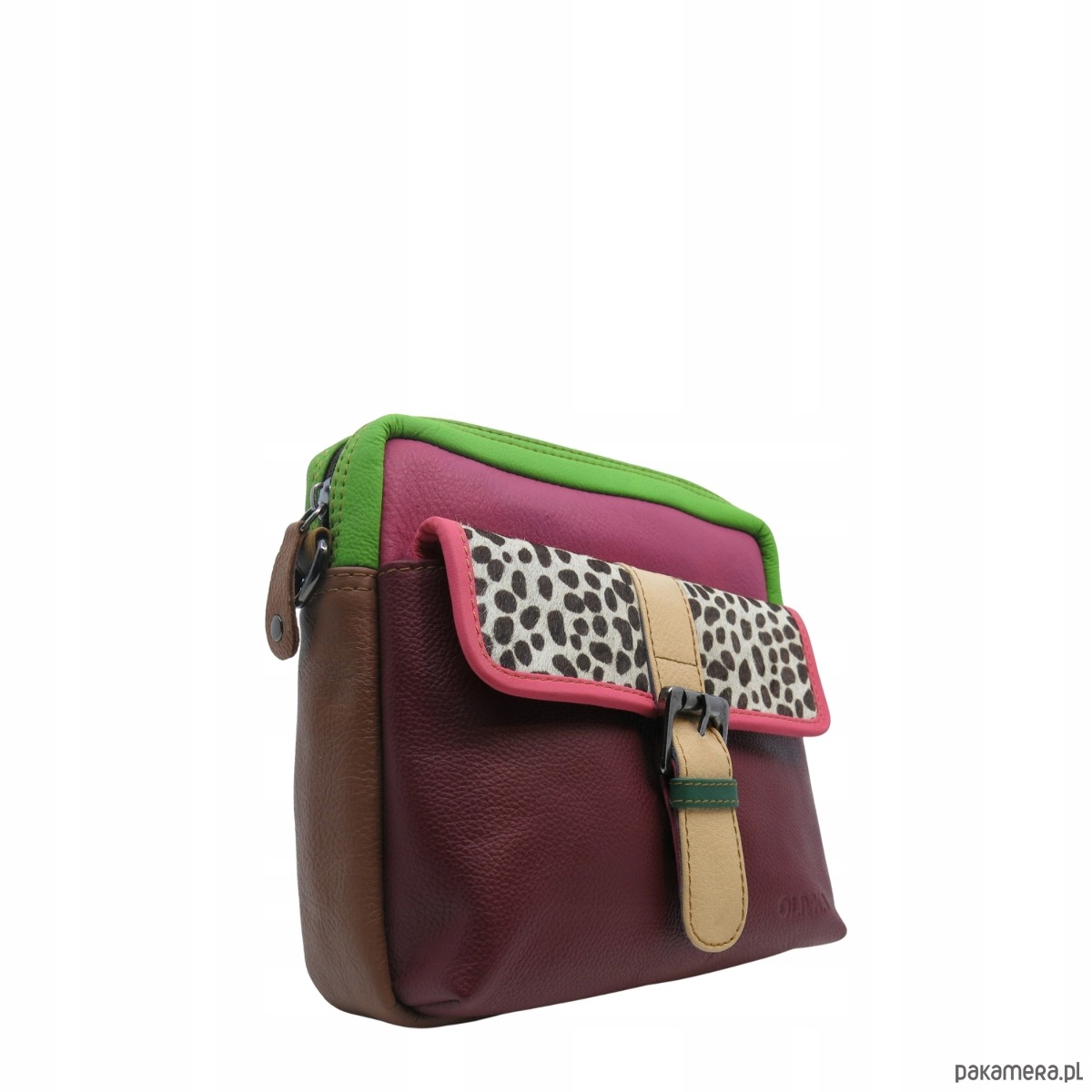 Szukasz torebki, która wyróżni Cię z tłumu? Ta kolorowa listonoszka to prawdziwy unikat - wykonana ręcznie ze skrawków naturalnej skóry, dzięki czemu nie ma dwóch takich samych egzemplarzy. Każda torebka to inna gra barw i faktur, która nada Twojej stylizacji charakteru.
