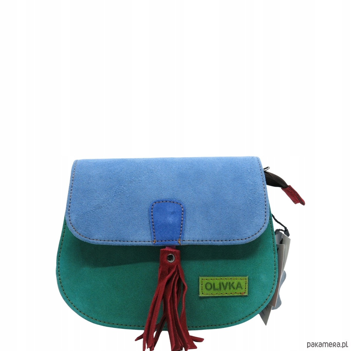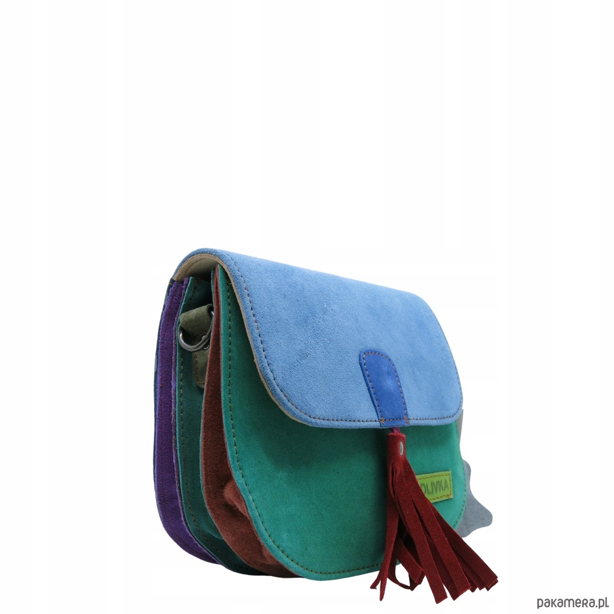 Torebka listonoszka zamszowa damska regulowany pasek kolorowa OLIVKA