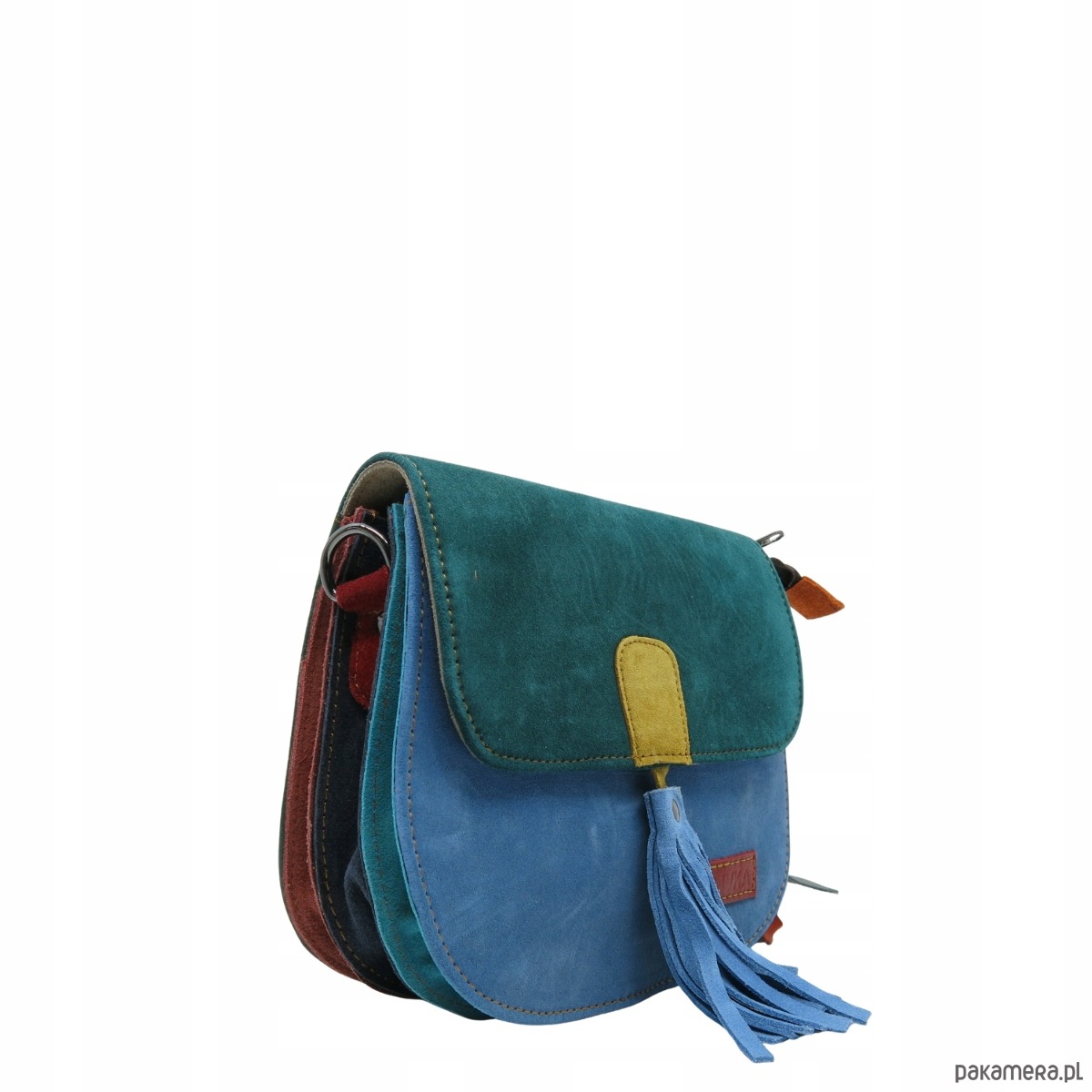 Torebka listonoszka zamszowa damska regulowany pasek kolorowa OLIVKA