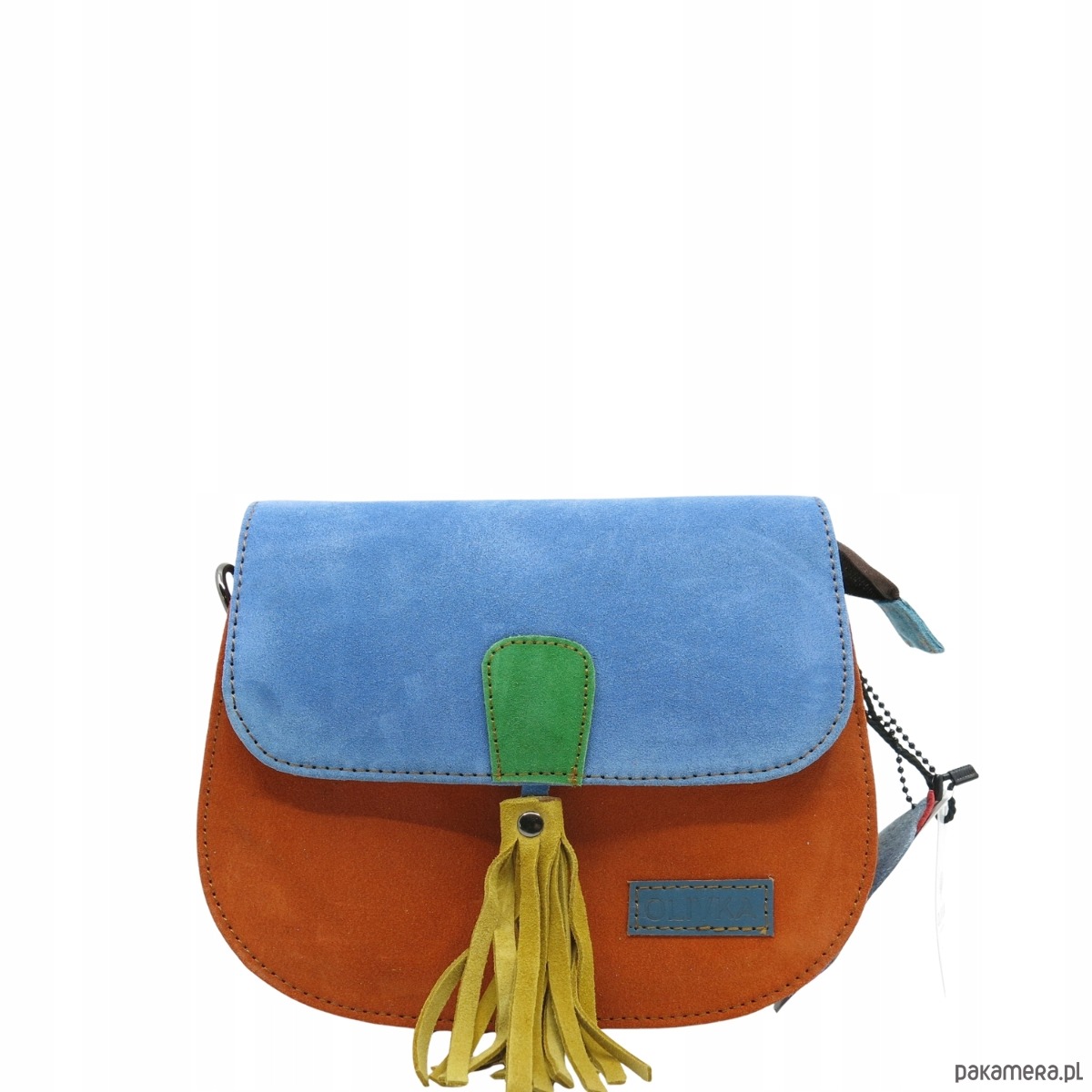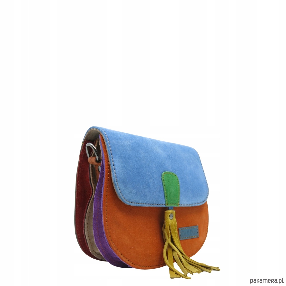 Torebka listonoszka zamszowa damska regulowany pasek kolorowa OLIVKA
