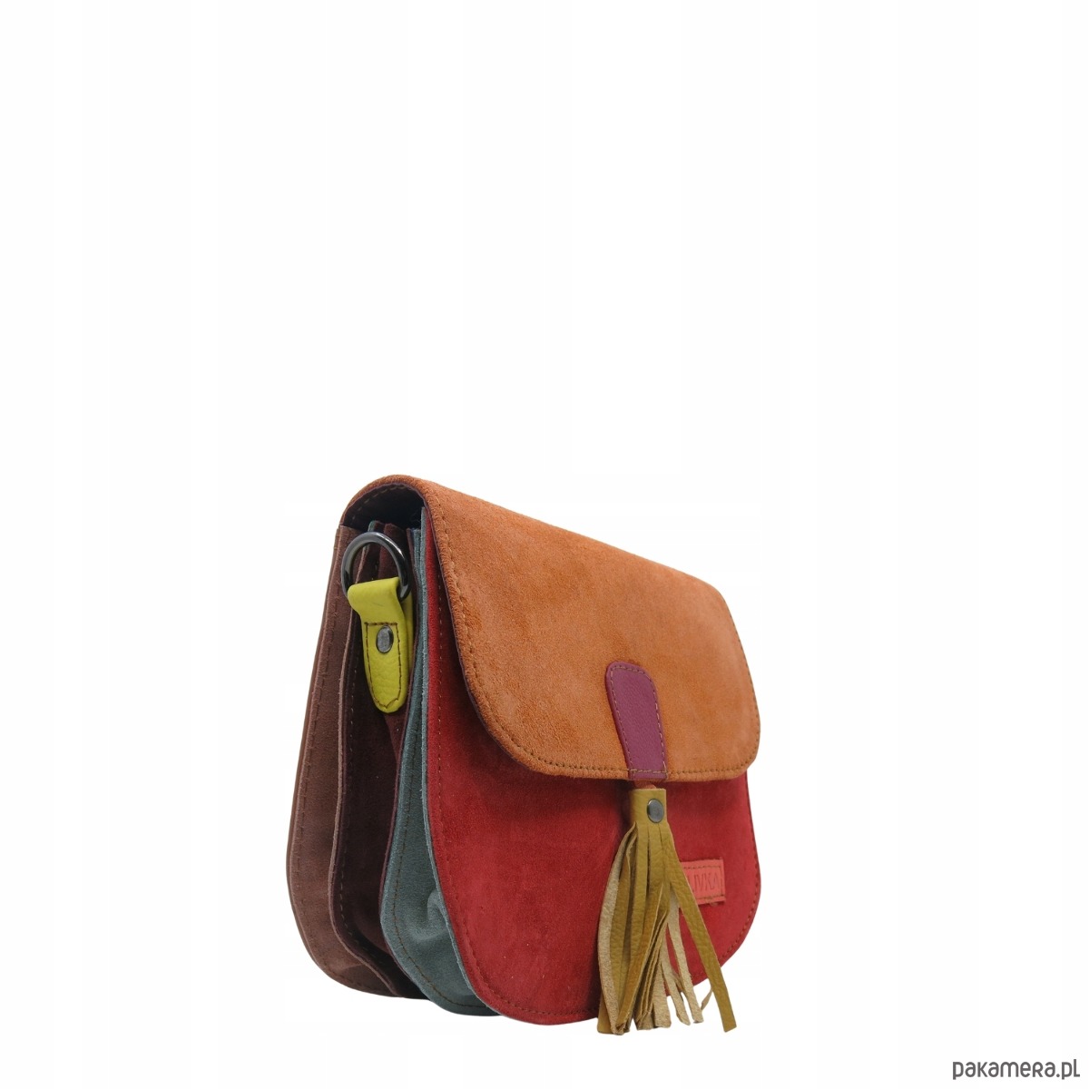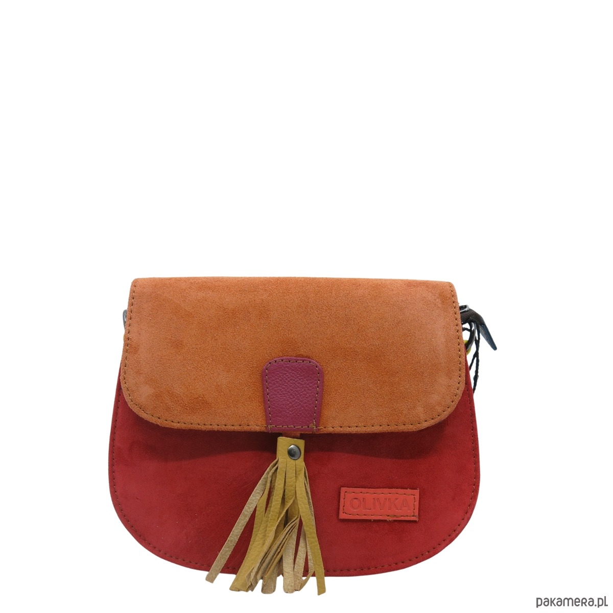 Torebka listonoszka zamszowa damska regulowany pasek kolorowa OLIVKA