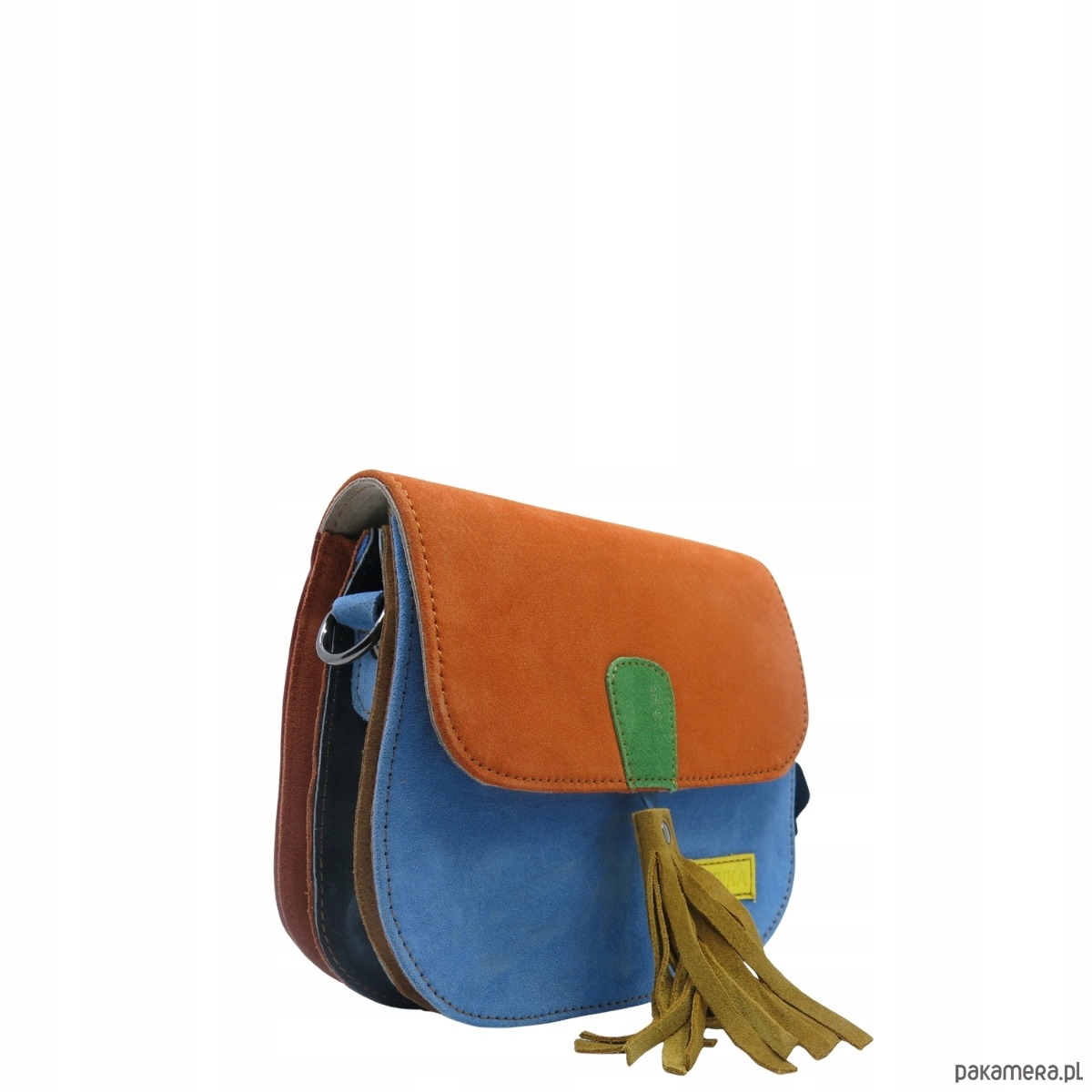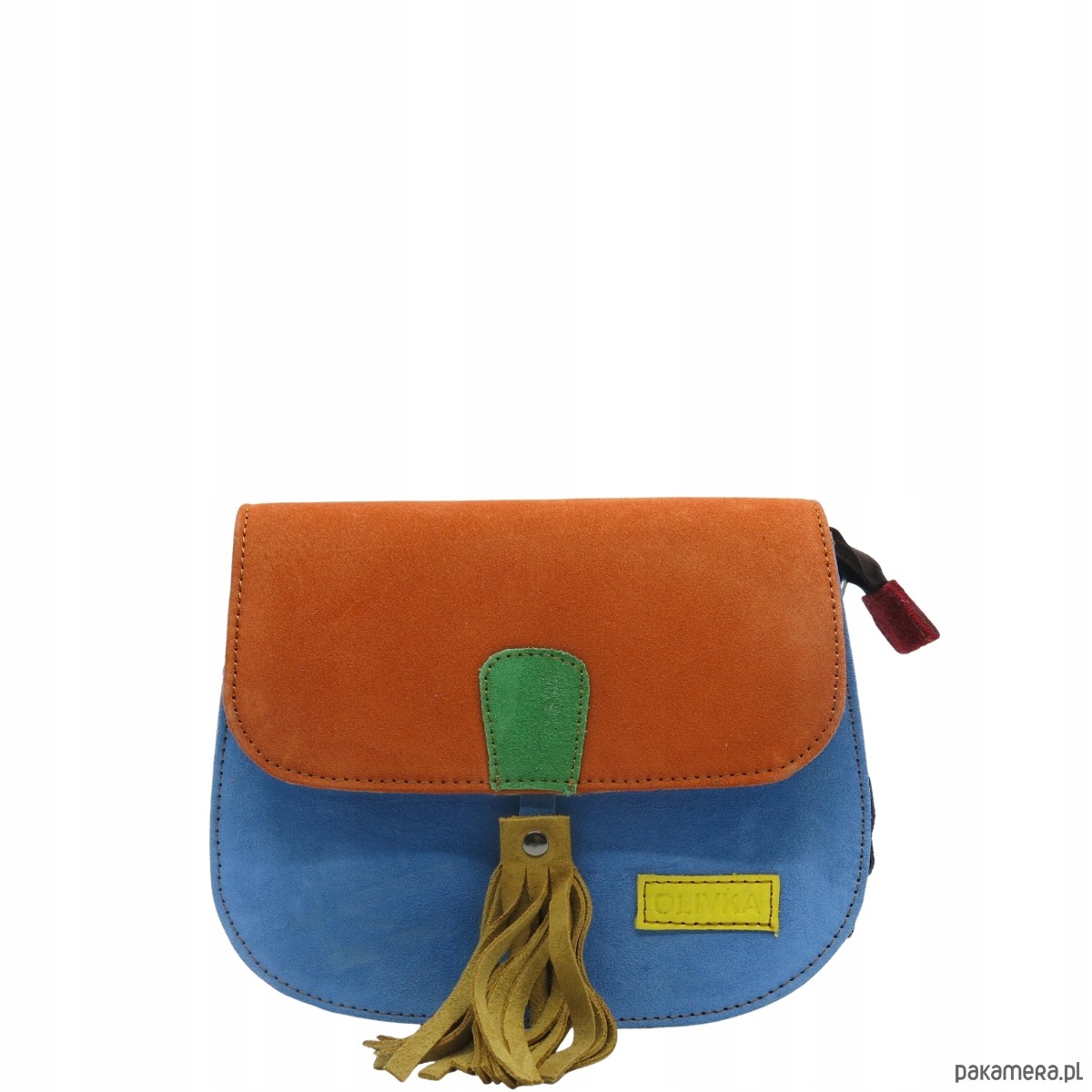 Torebka listonoszka zamszowa damska regulowany pasek kolorowa OLIVKA