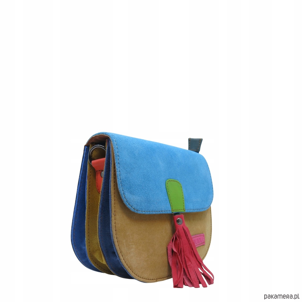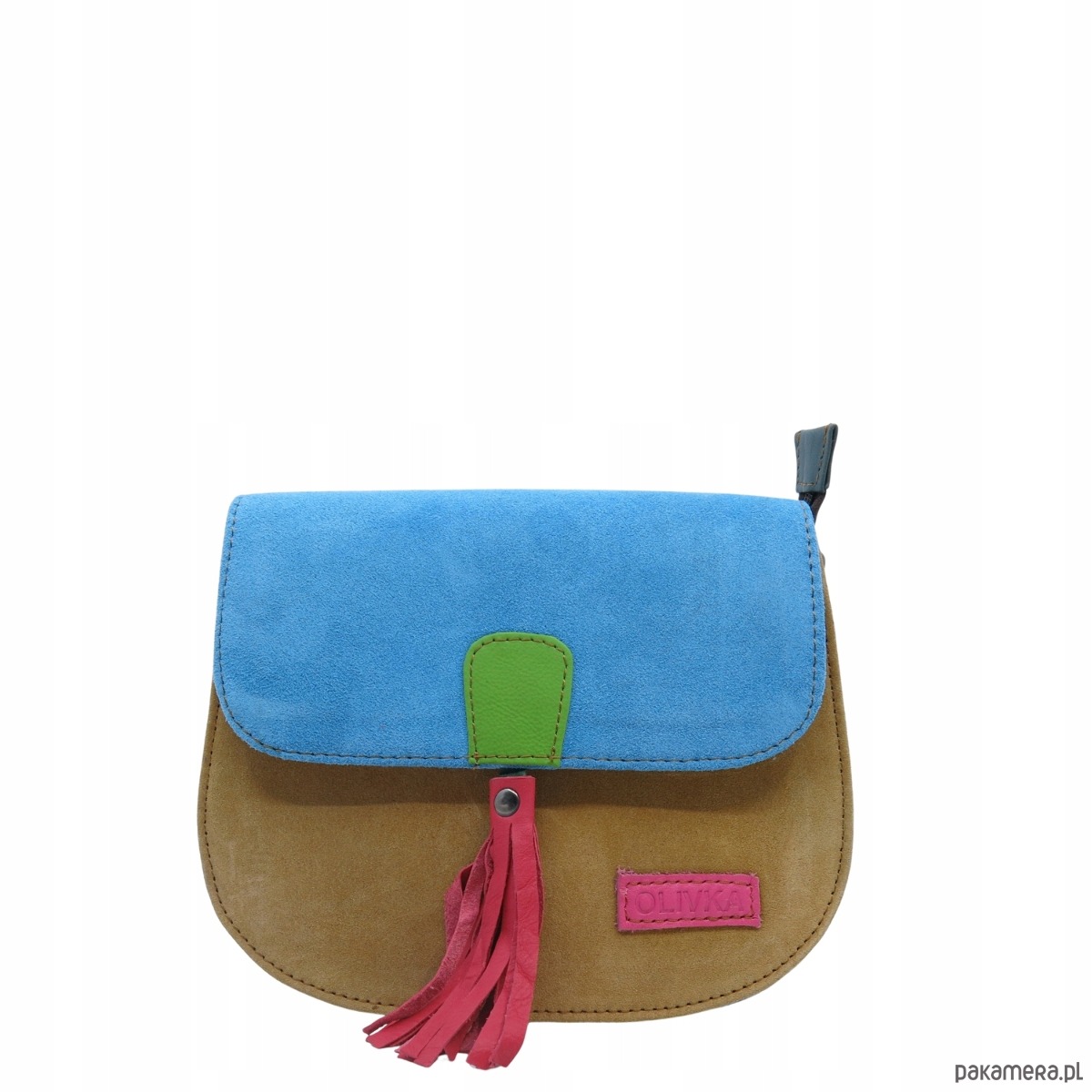 Torebka listonoszka zamszowa damska regulowany pasek kolorowa OLIVKA