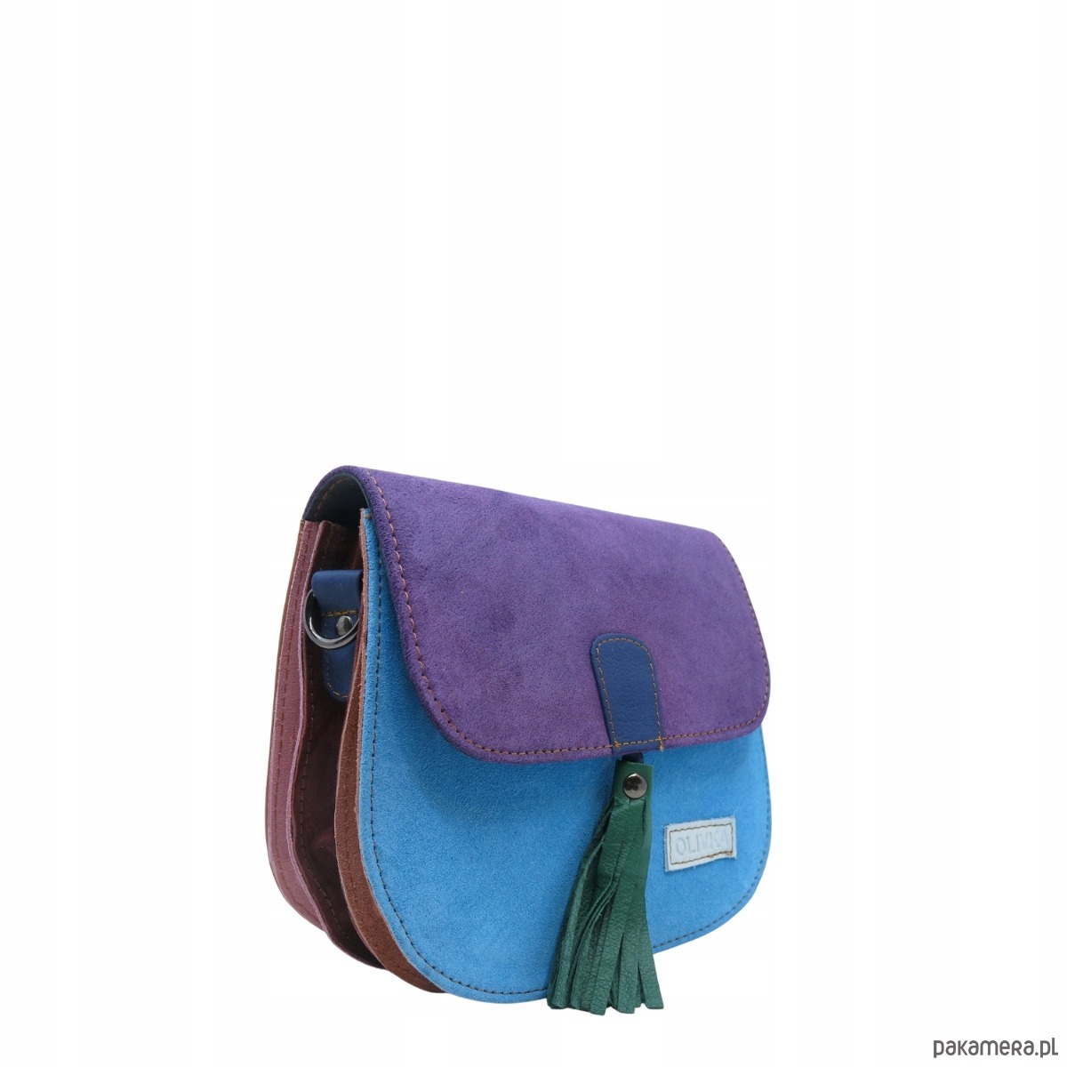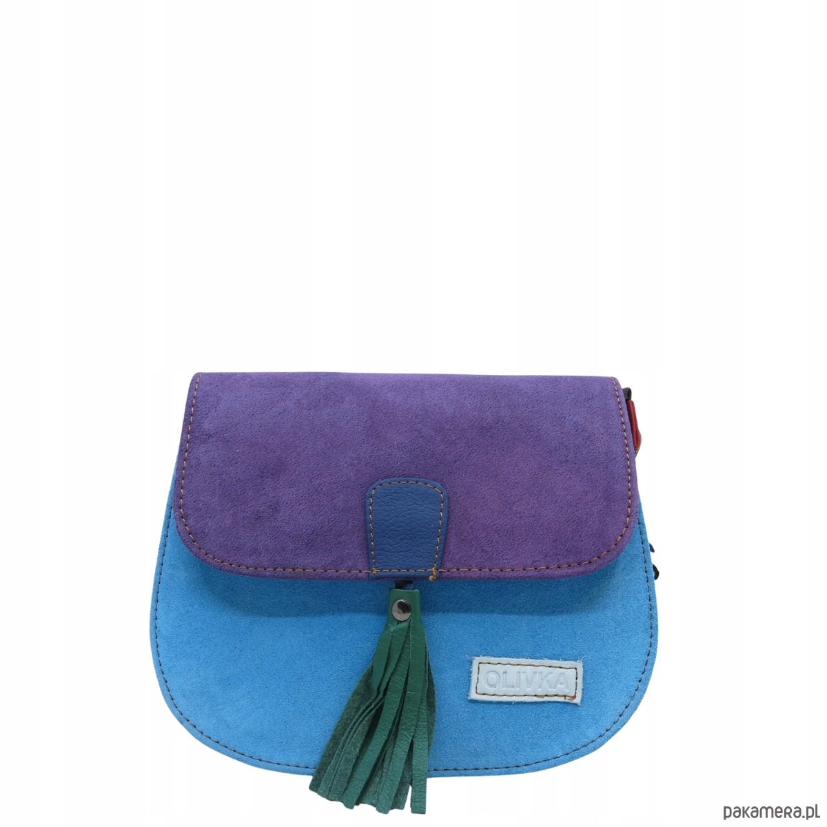 Torebka listonoszka zamszowa damska regulowany pasek kolorowa OLIVKA
