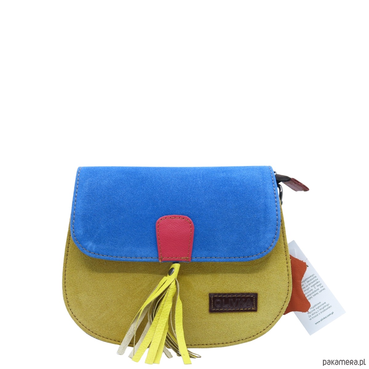 Torebka listonoszka zamszowa damska regulowany pasek kolorowa OLIVKA