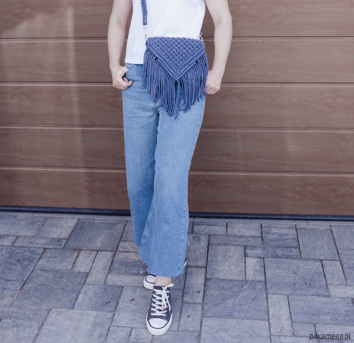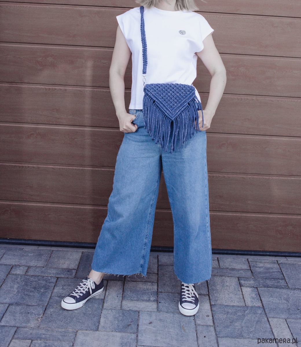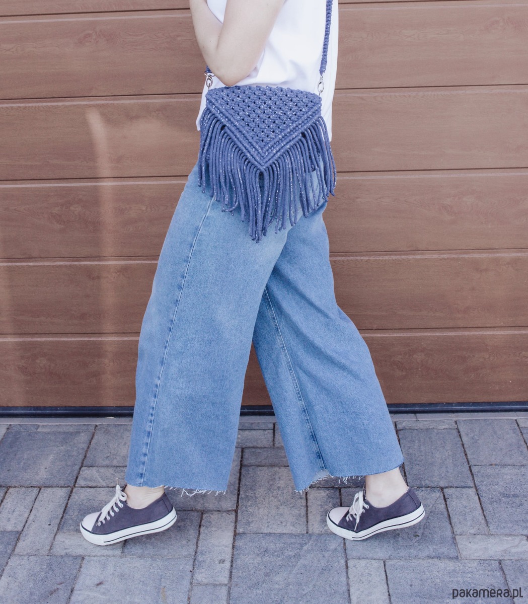 Torebka z makramy.. Kolor denim/niebieski z dodatkiem srebrnej nitki.. Super na imprezę.. Sznurek bawełniany.. Nie ma wewnątrz poszewki ale jest gęsto pleciona i nic nie wypadnie (chyba że malutki kolczyk)))