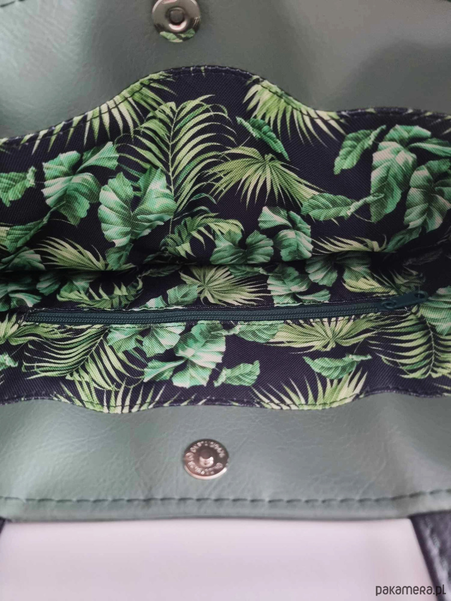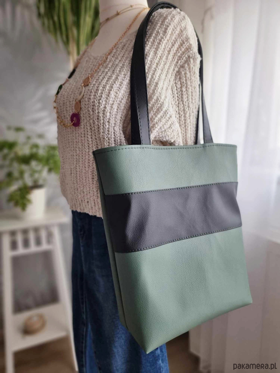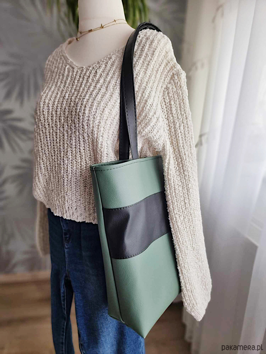 Stylowa i funkcjonalna torebka miejska wykonana z wysokiej jakości ekoskóry w eleganckim połączeniu kolorów khaki i czerni. Idealna na co dzień, świetnie uzupełni zarówno casualowe, jak i bardziej formalne stylizacje.