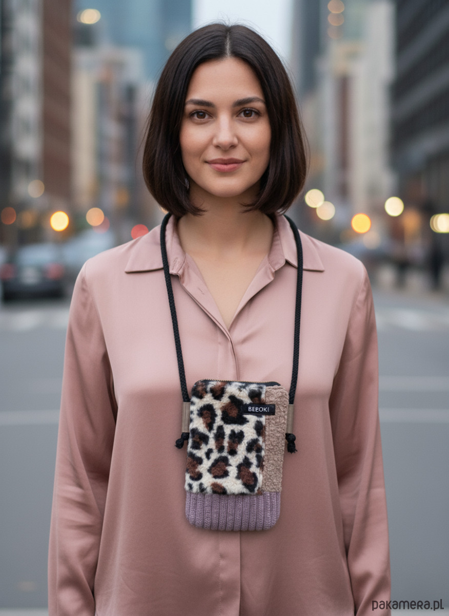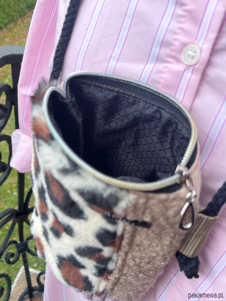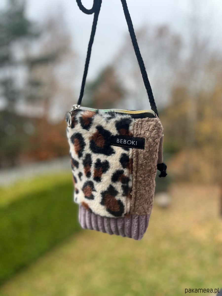 Stylowa, przytulna i pełna charakteru – torebka BEBOKI to idealne połączenie modnego designu i praktyczności. Wyróżnia się oryginalnym zestawieniem materiałów: miękkie sztuczne futerko w panterkę, ciepły baranek, elegancki sztruks oraz tkanina wodoodporna z tyłu tworzą razem niepowtarzalną całość.