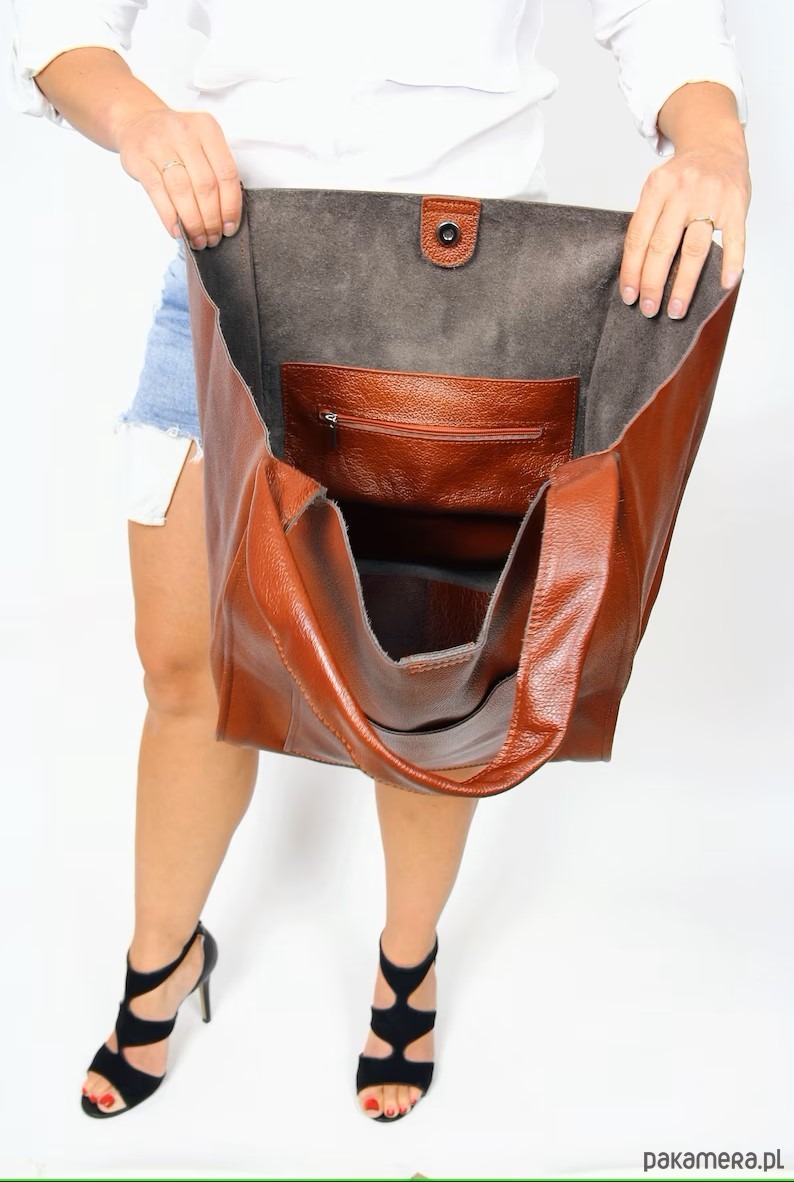 Torebka - worek, która wykonana jest w 100% z wysokogatunkowej naturalnej skóry włoskiej. Jest bardzo pojemna i praktyczna, wystarczająco duża aby pomieścić w niej niezbędne przedmioty użytku codziennego. Wykonana z dbałością o każdy szczegół. Wewnątrz znajduje się kieszeń na telefon oraz dokumenty.