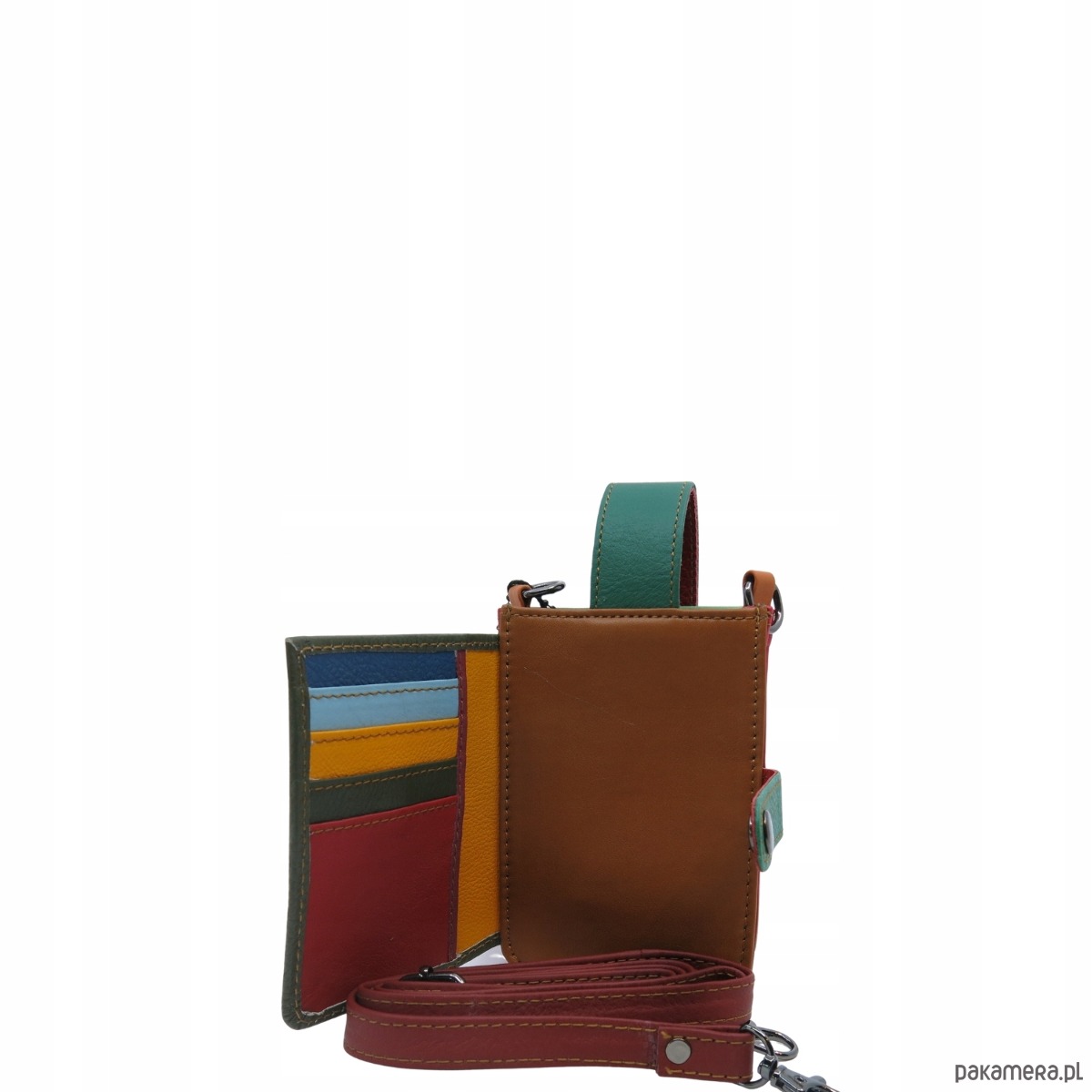 Torebka na telefon i portfel 2w1 skóra naturalna unikatowa pasek OLIVKA
