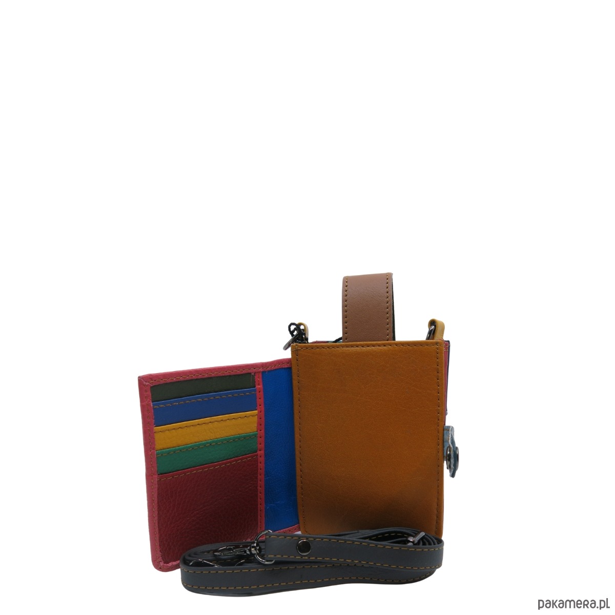 Torebka na telefon i portfel 2w1 skóra naturalna unikatowa pasek OLIVKA
