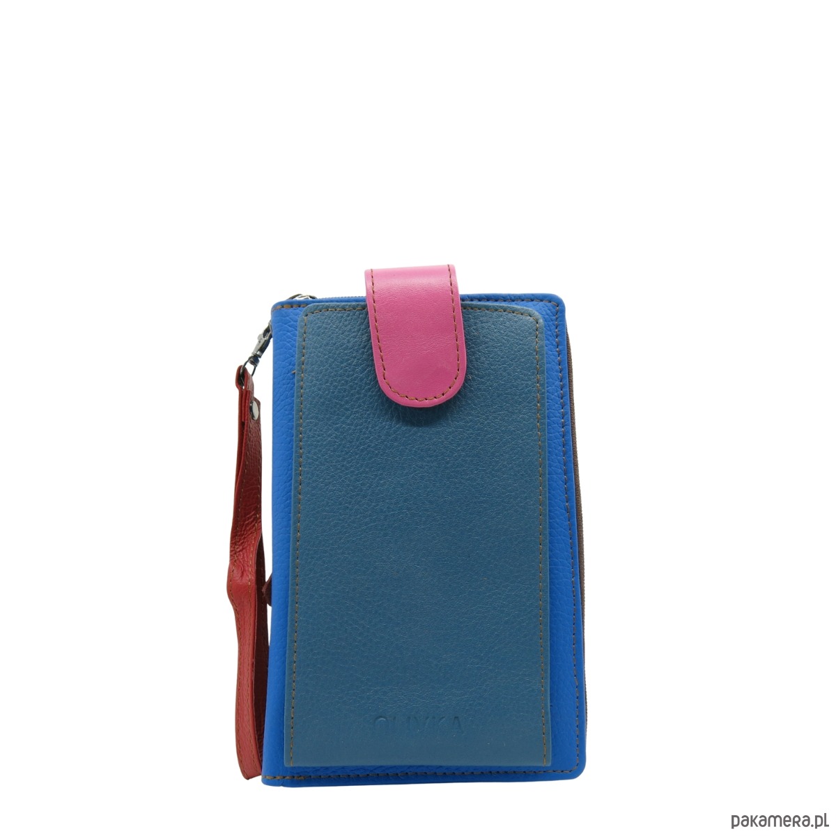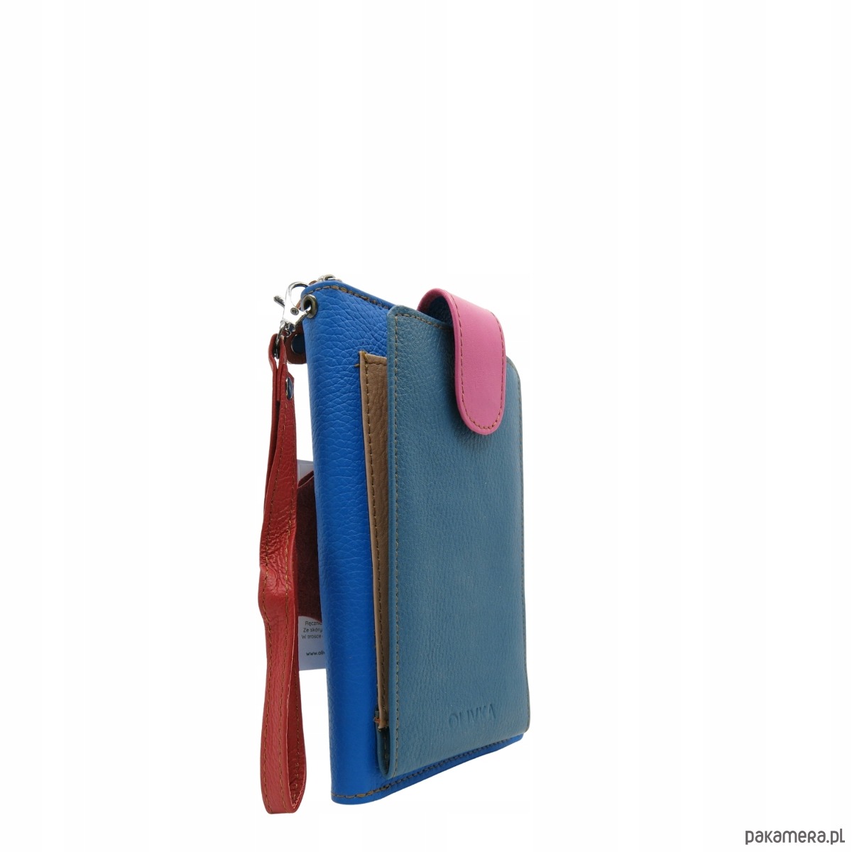 Torebka na telefon portfel 2w1 skórzany dwa paski pojemny zero waste OLIVKA