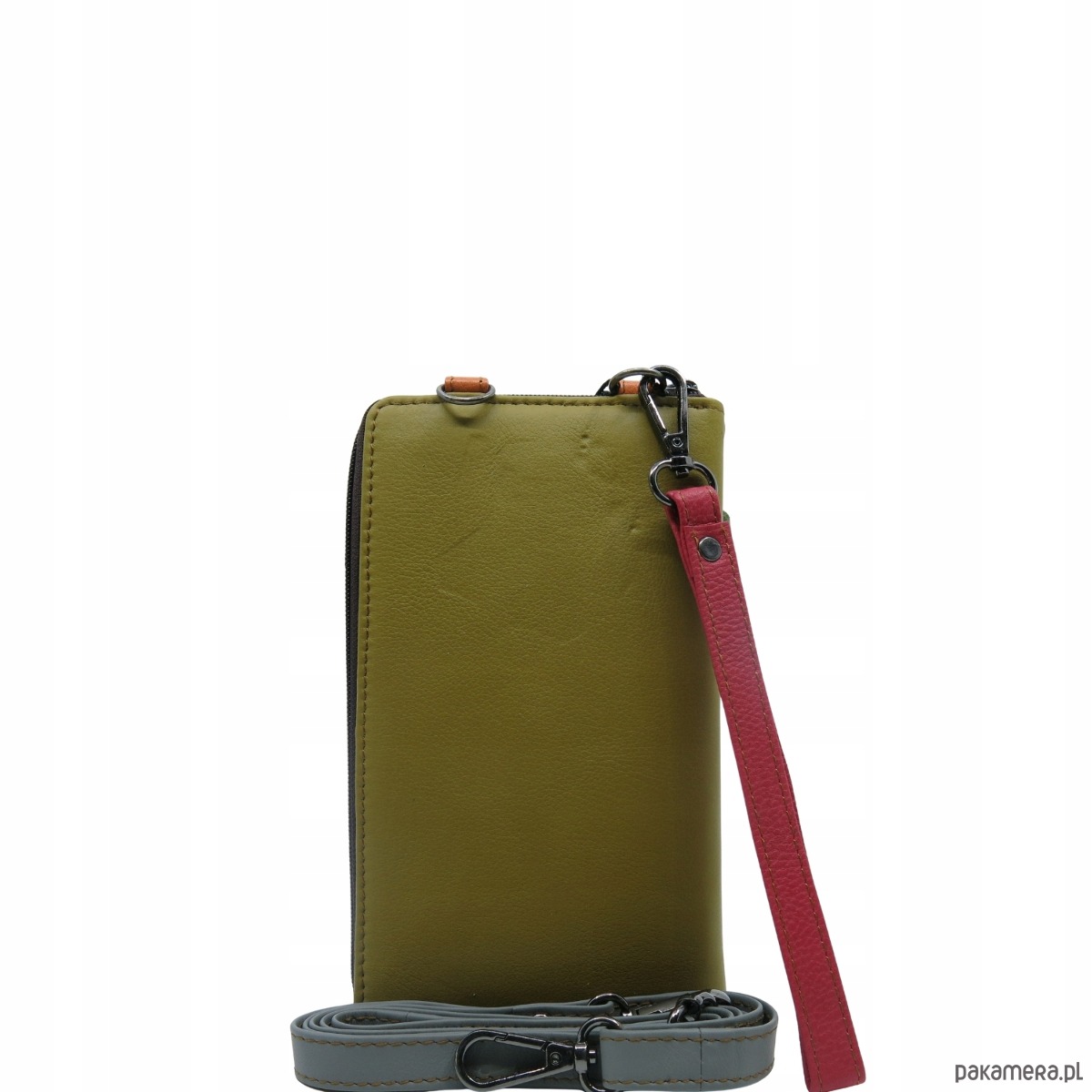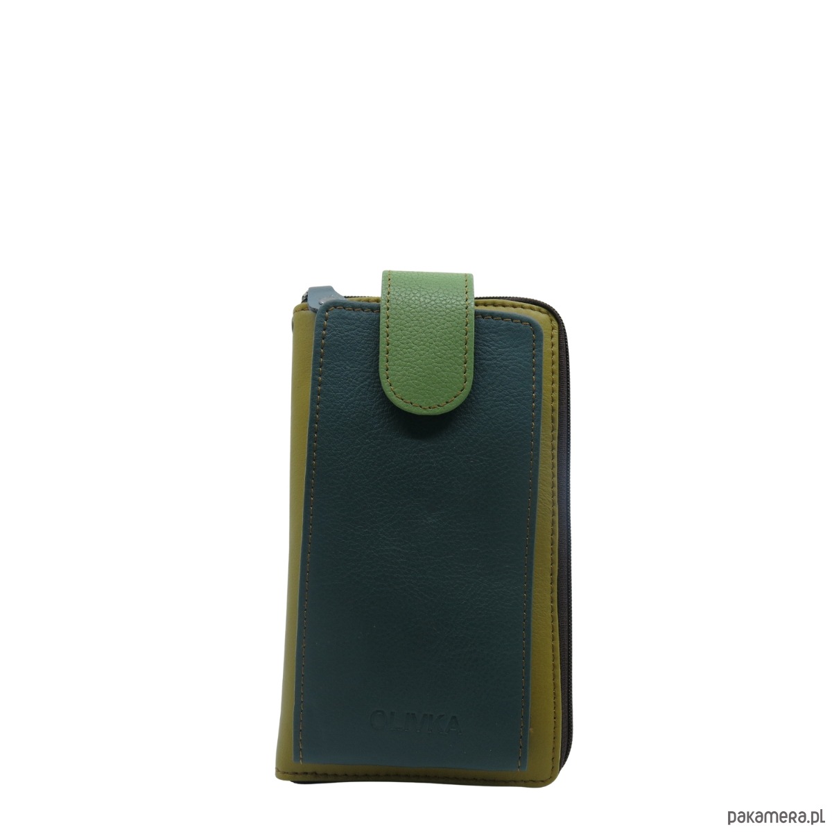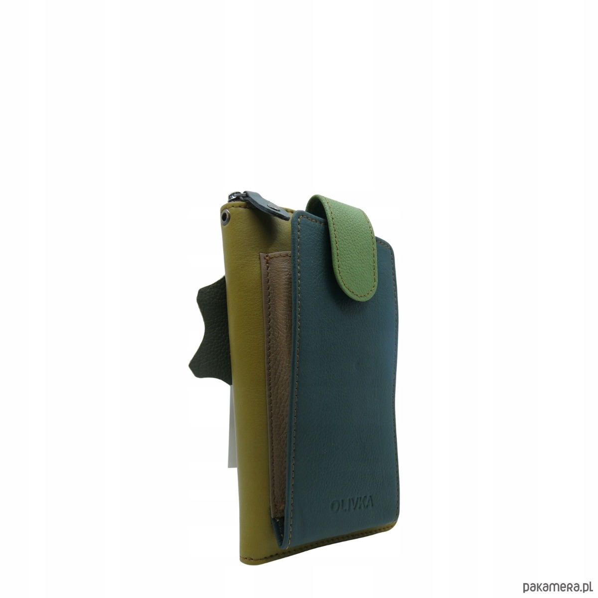 Torebka na telefon portfel 2w1 skórzany dwa paski pojemny zero waste OLIVKA