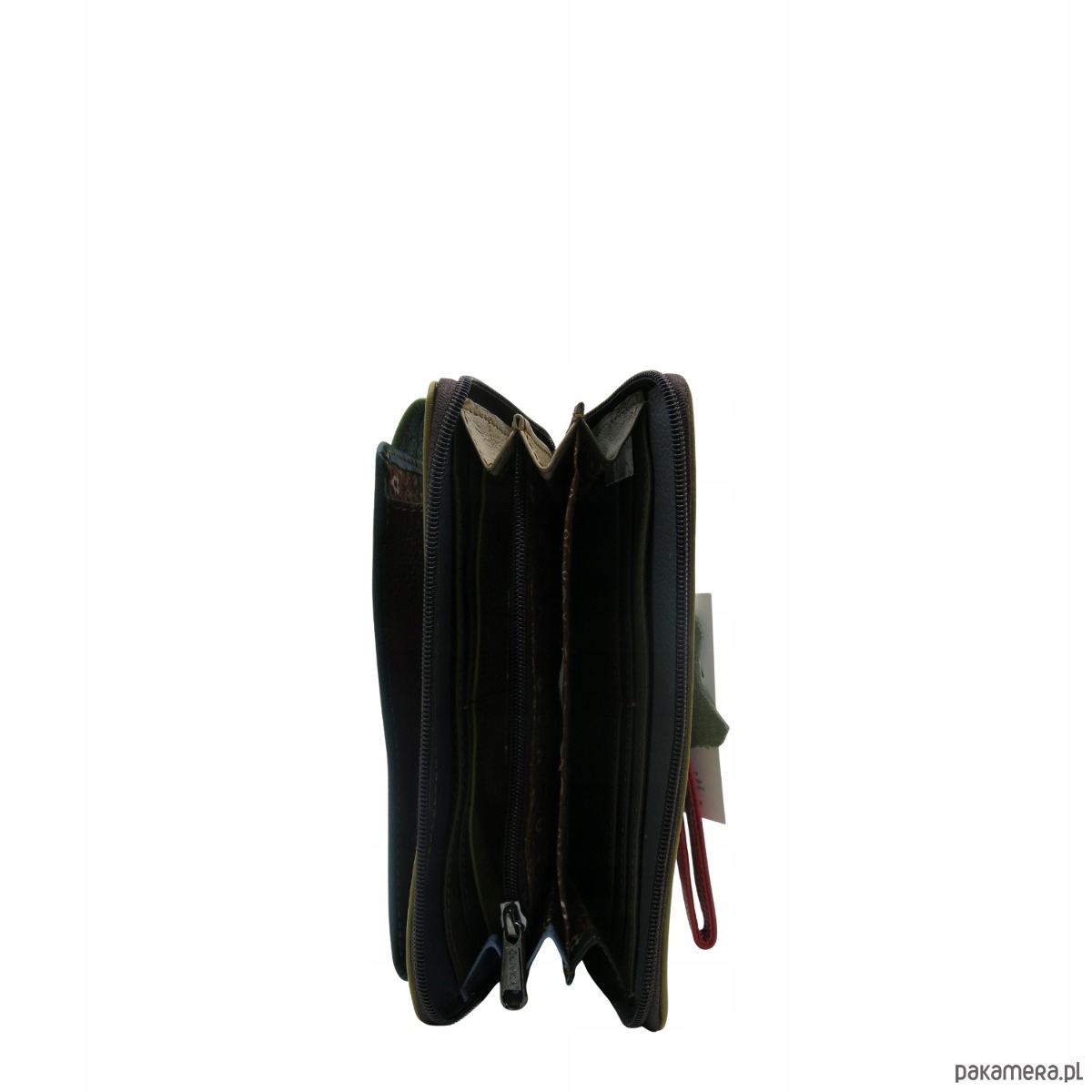 główna komora podzielona na cztery przegrody w tym jedna zamykana na suwak z miejscem na bilon