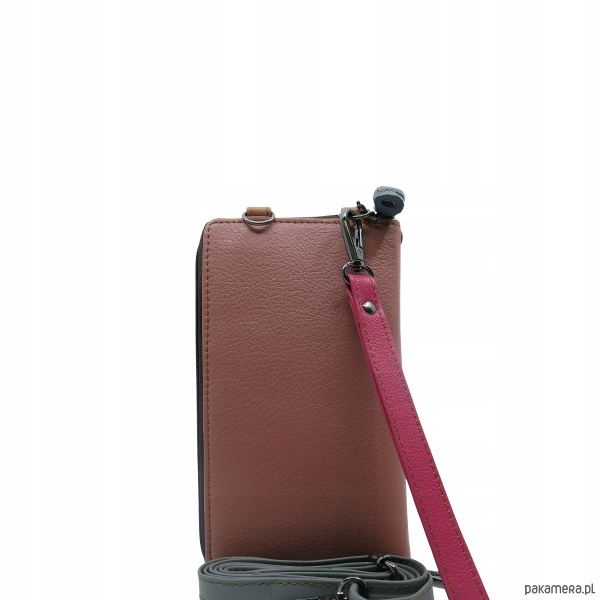 Skórzany torebko–portfel to idealny wybór dla kobiet, które szukają funkcjonalnego, ale i modnego dodatku. Możesz go nosić swobodnie na nadgarstku lub na dłuższym pasku, co zapewnia komfort użytkowania.