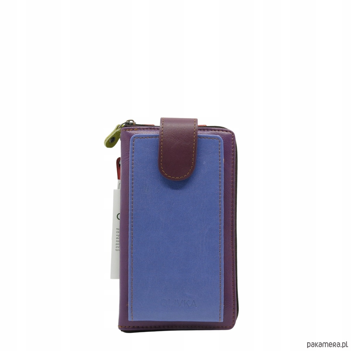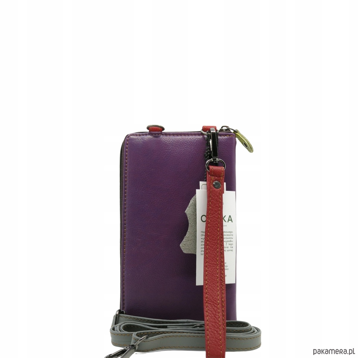 Torebka na telefon portfel 2w1 skórzany dwa paski pojemny zero waste OLIVKA