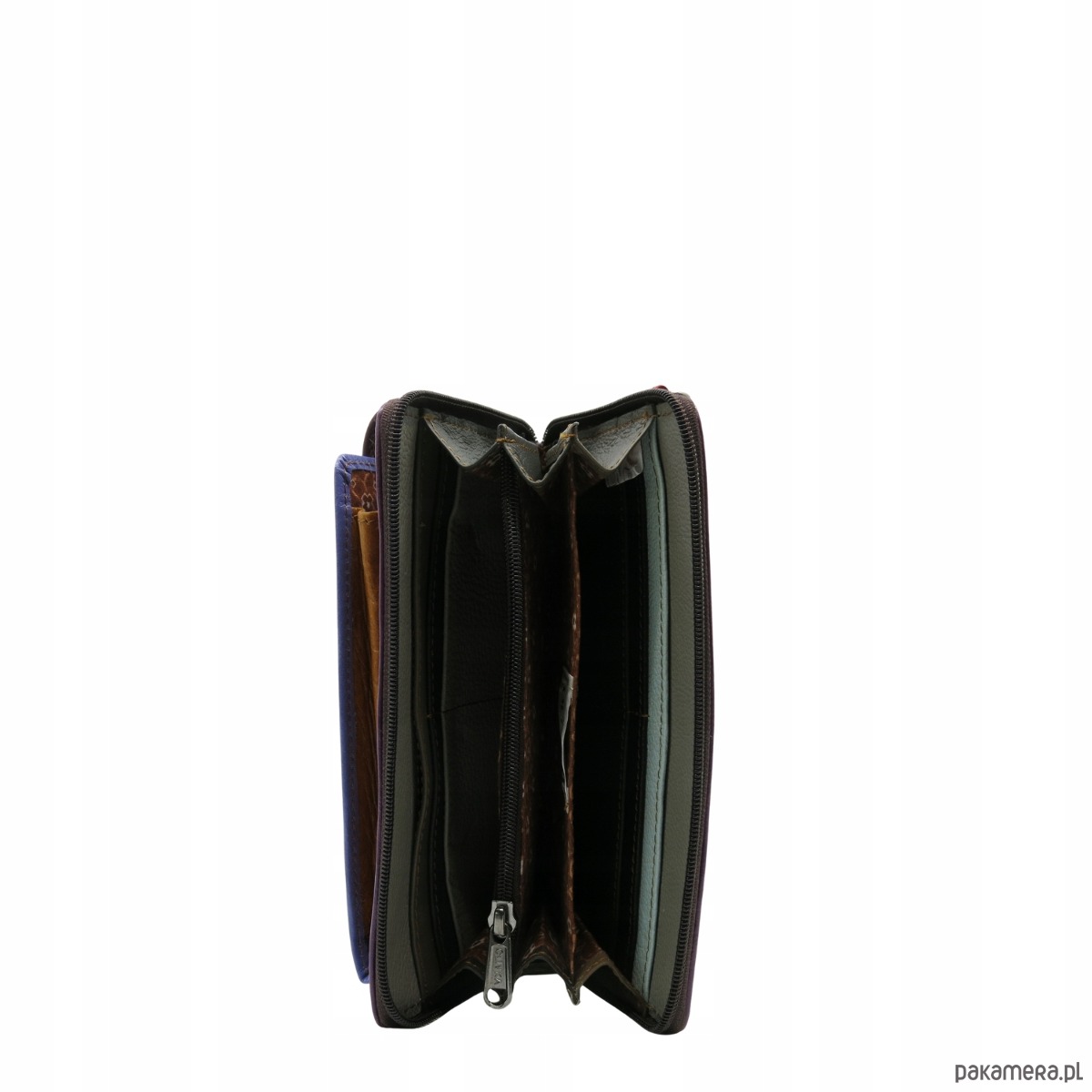 główna komora podzielona na cztery przegrody w tym jedna zamykana na suwak z miejscem na bilon