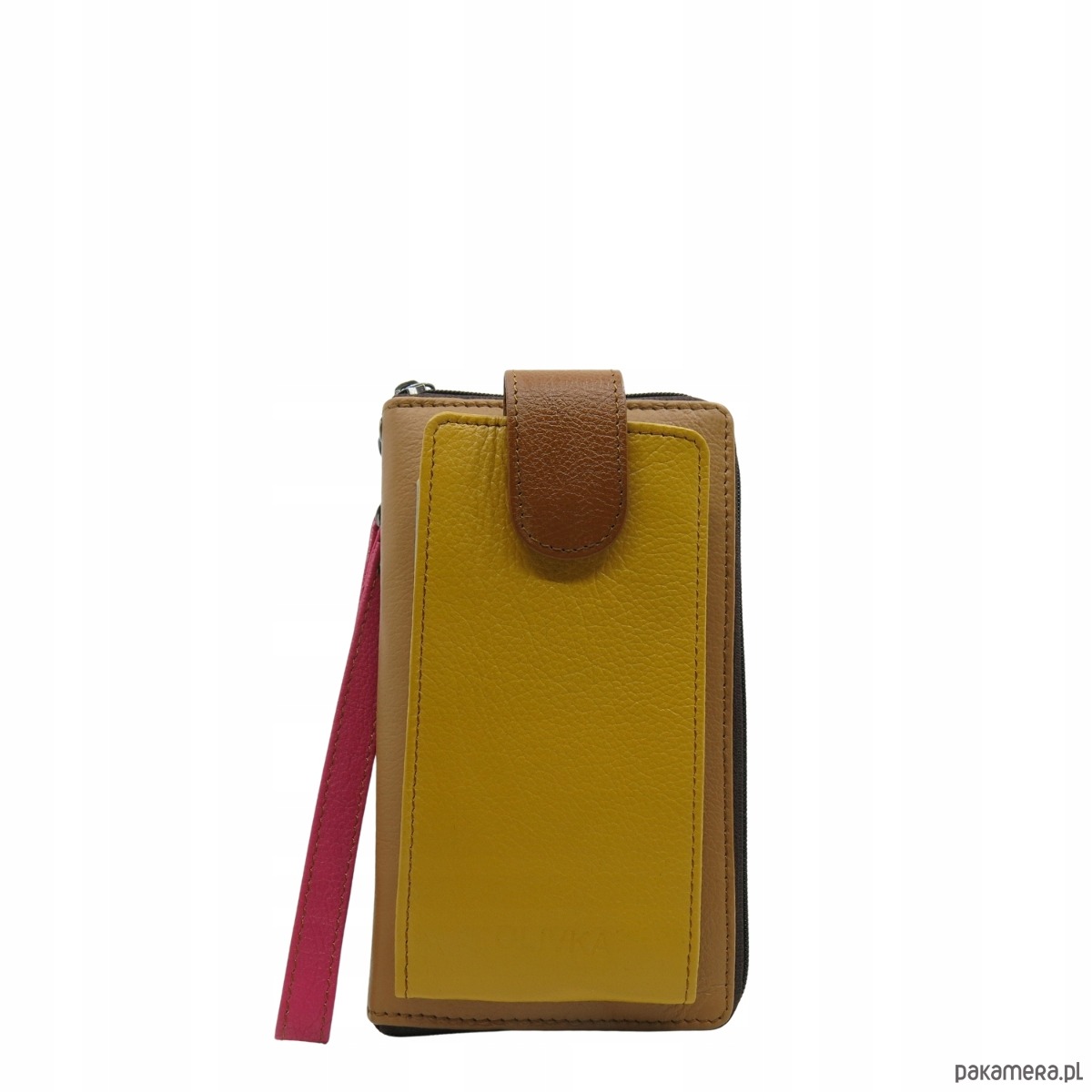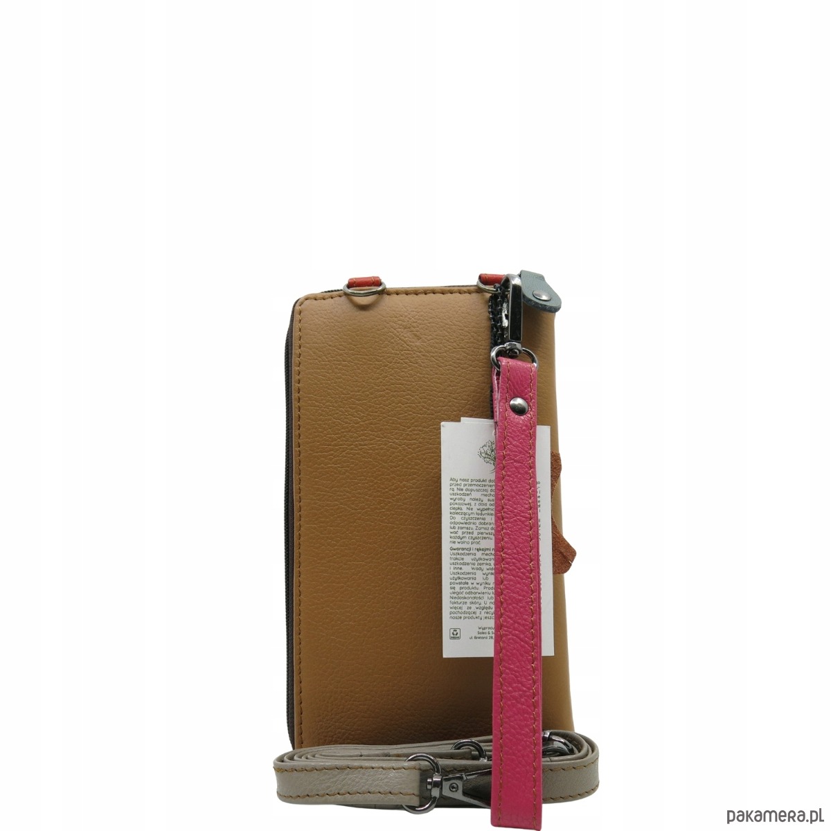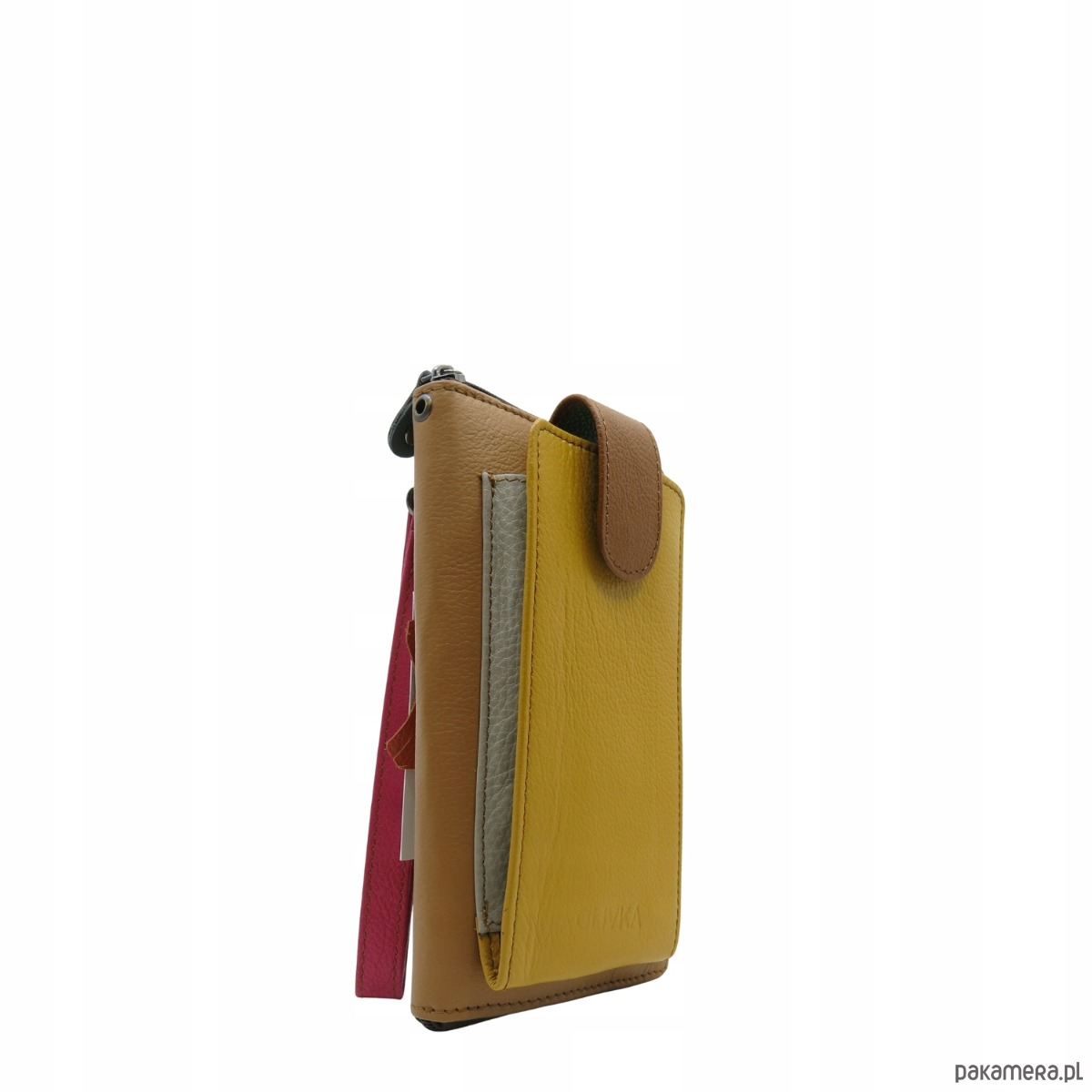 Torebka na telefon portfel 2w1 skórzany dwa paski pojemny zero waste OLIVKA