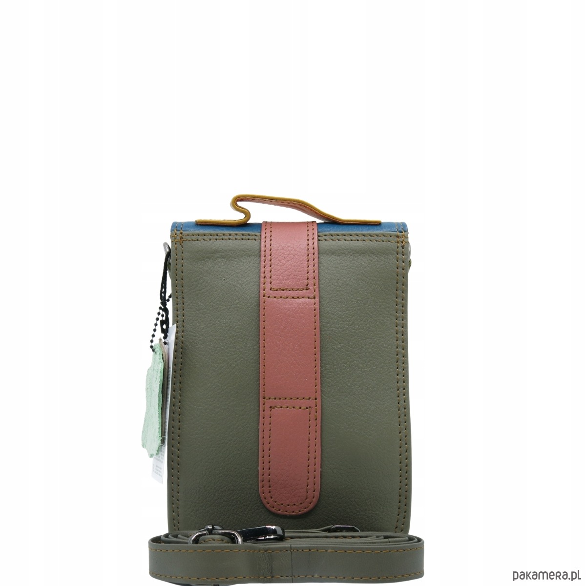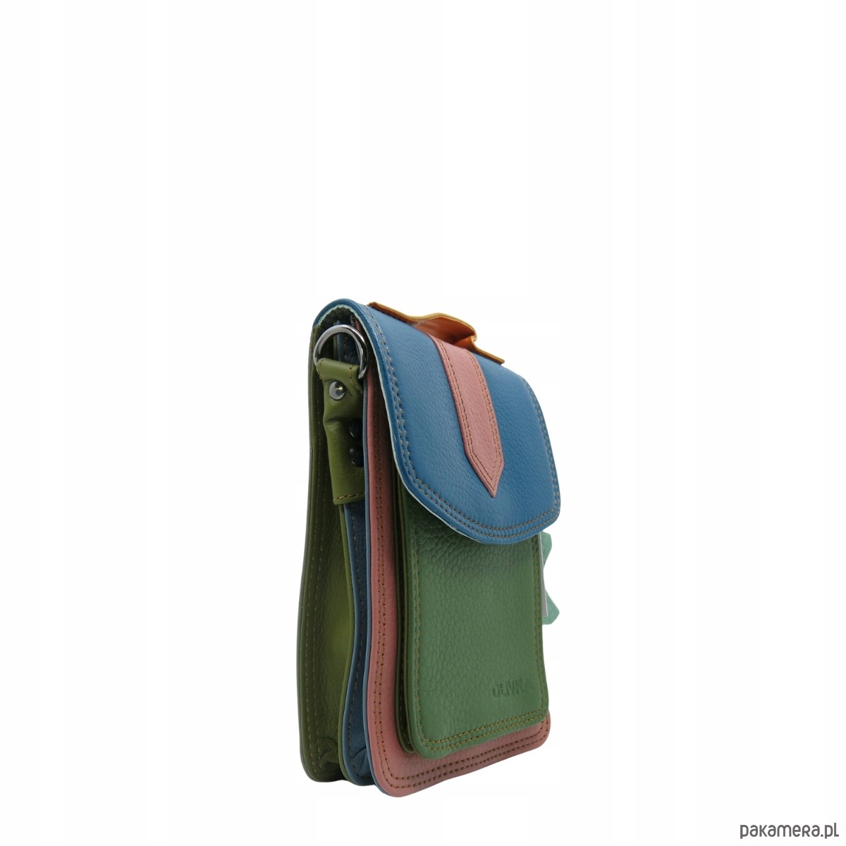 Torebka na telefon skórzana damska listonoszka z rączka i szlufką na pasek