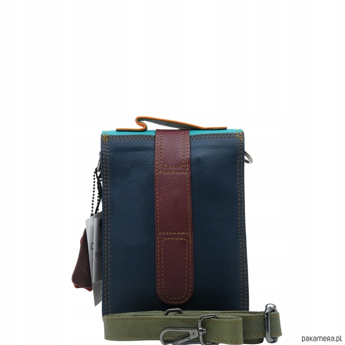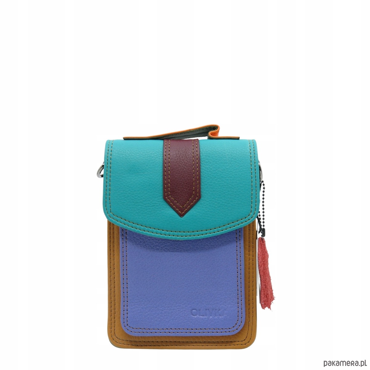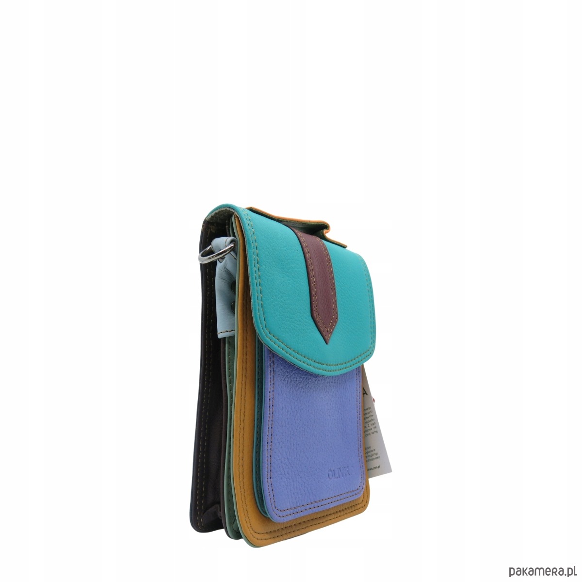 Torebka na telefon skórzana damska listonoszka z rączka i szlufką na pasek