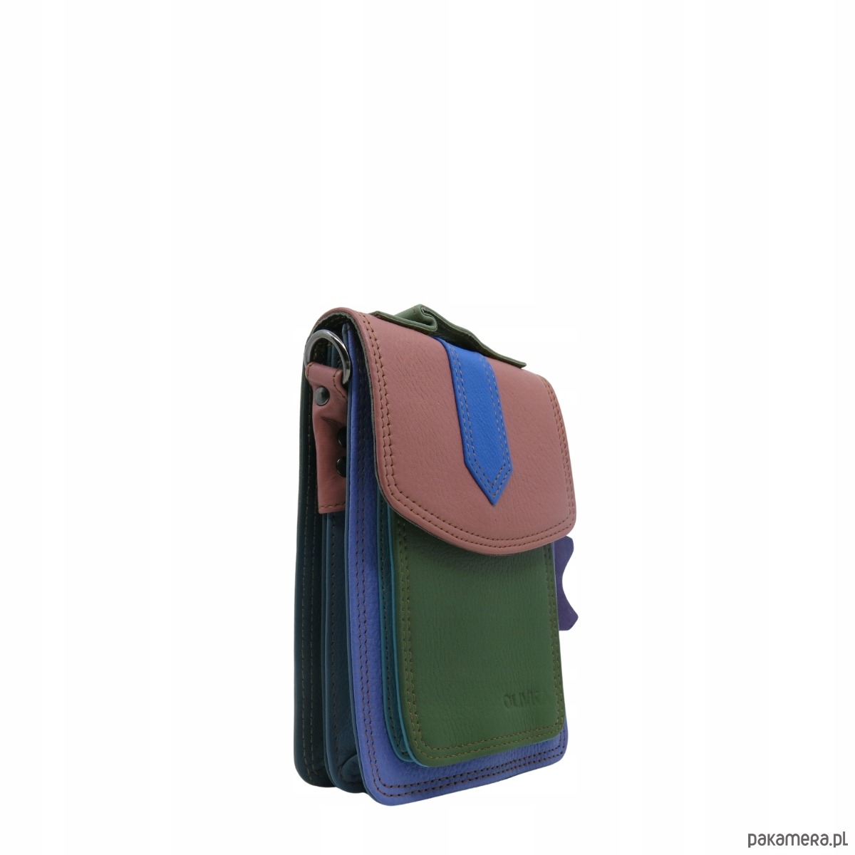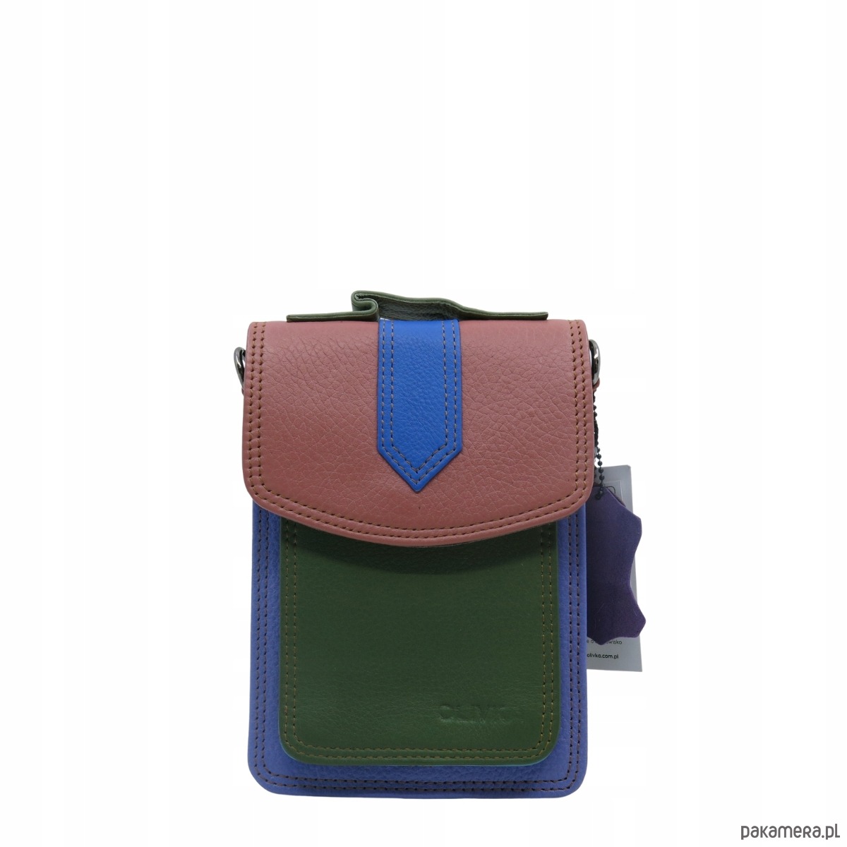 Torebka na telefon skórzana damska listonoszka z rączka i szlufką na pasek