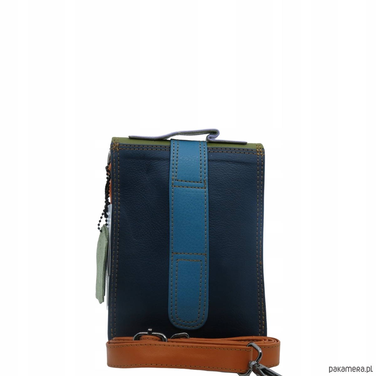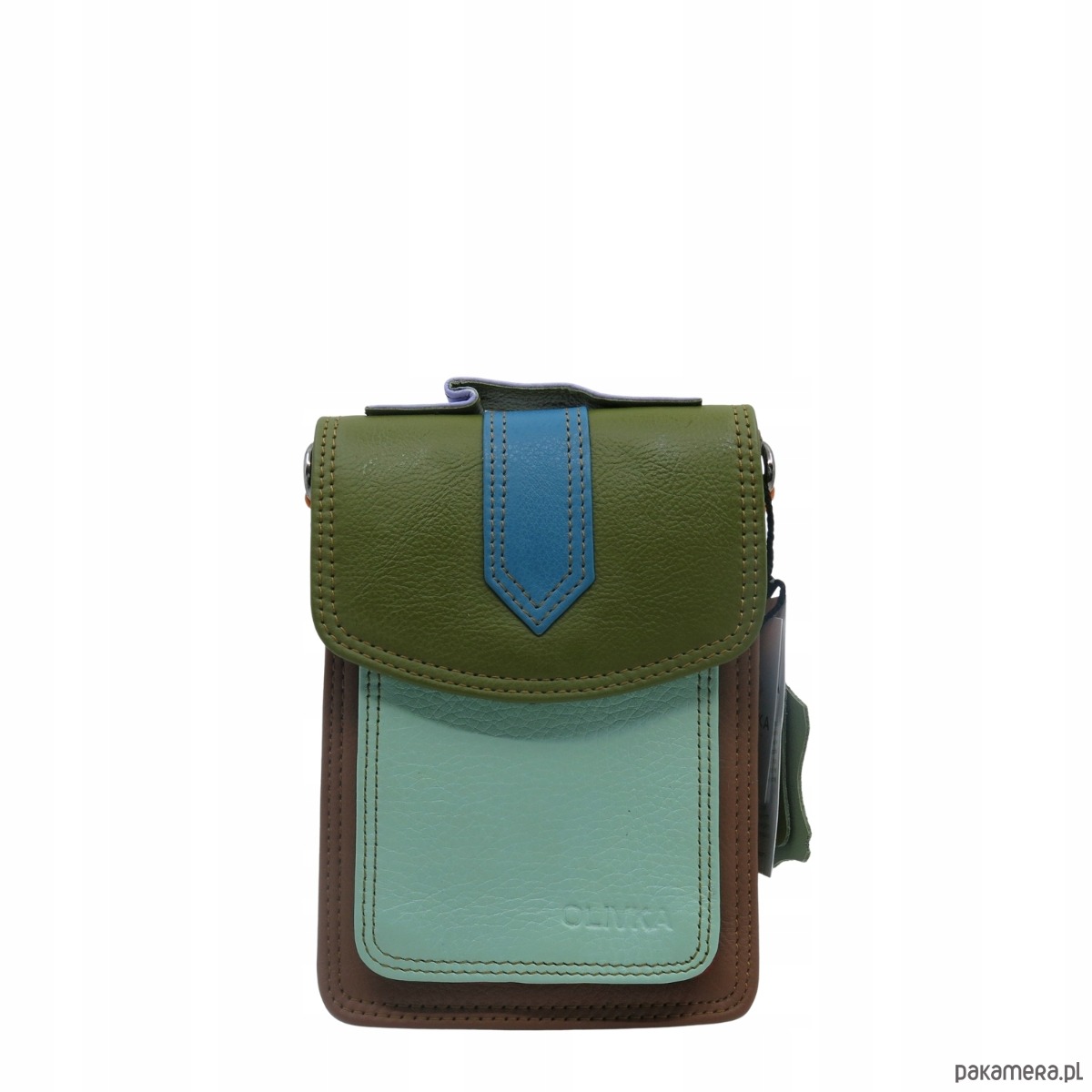 Torebka na telefon skórzana damska listonoszka z rączka i szlufką na pasek