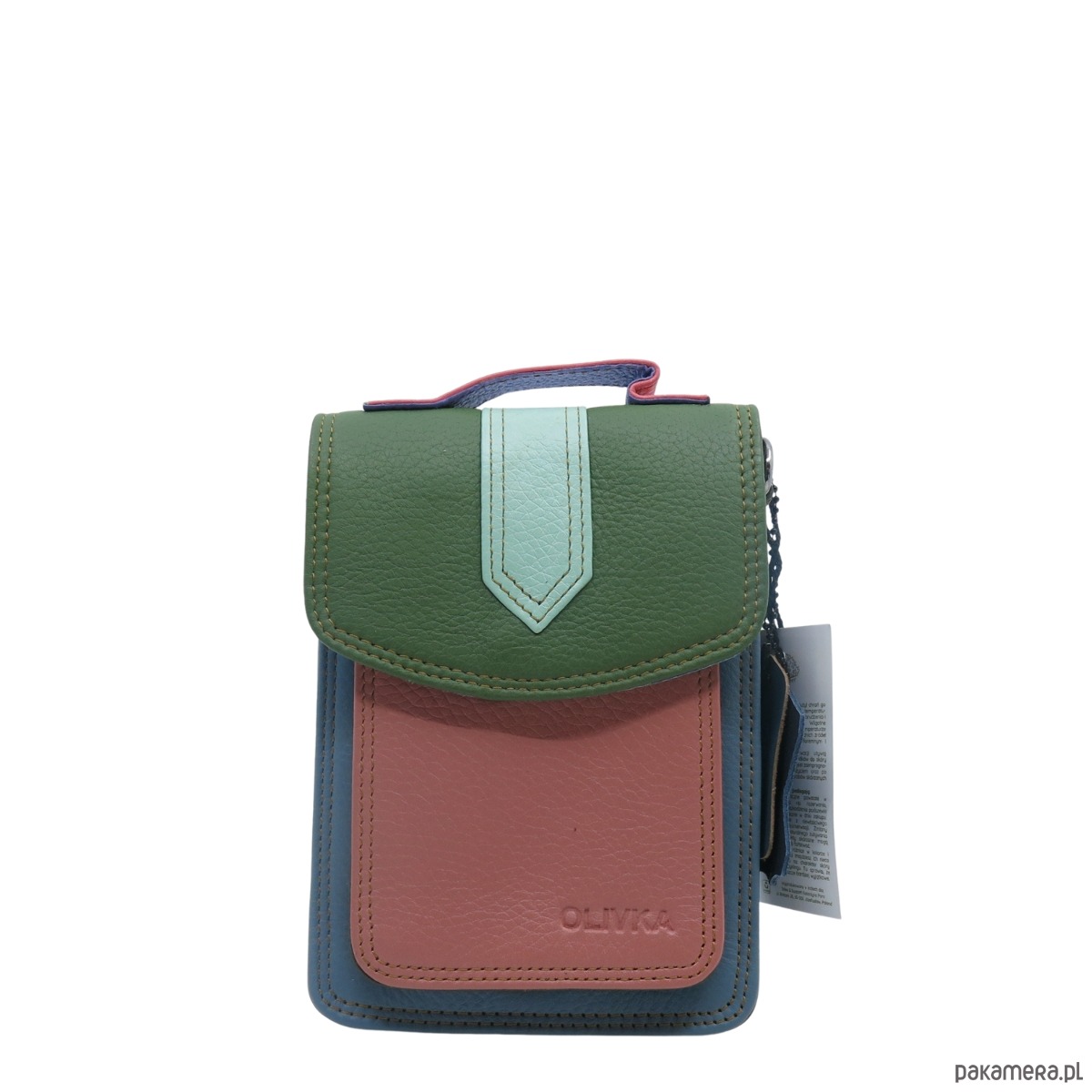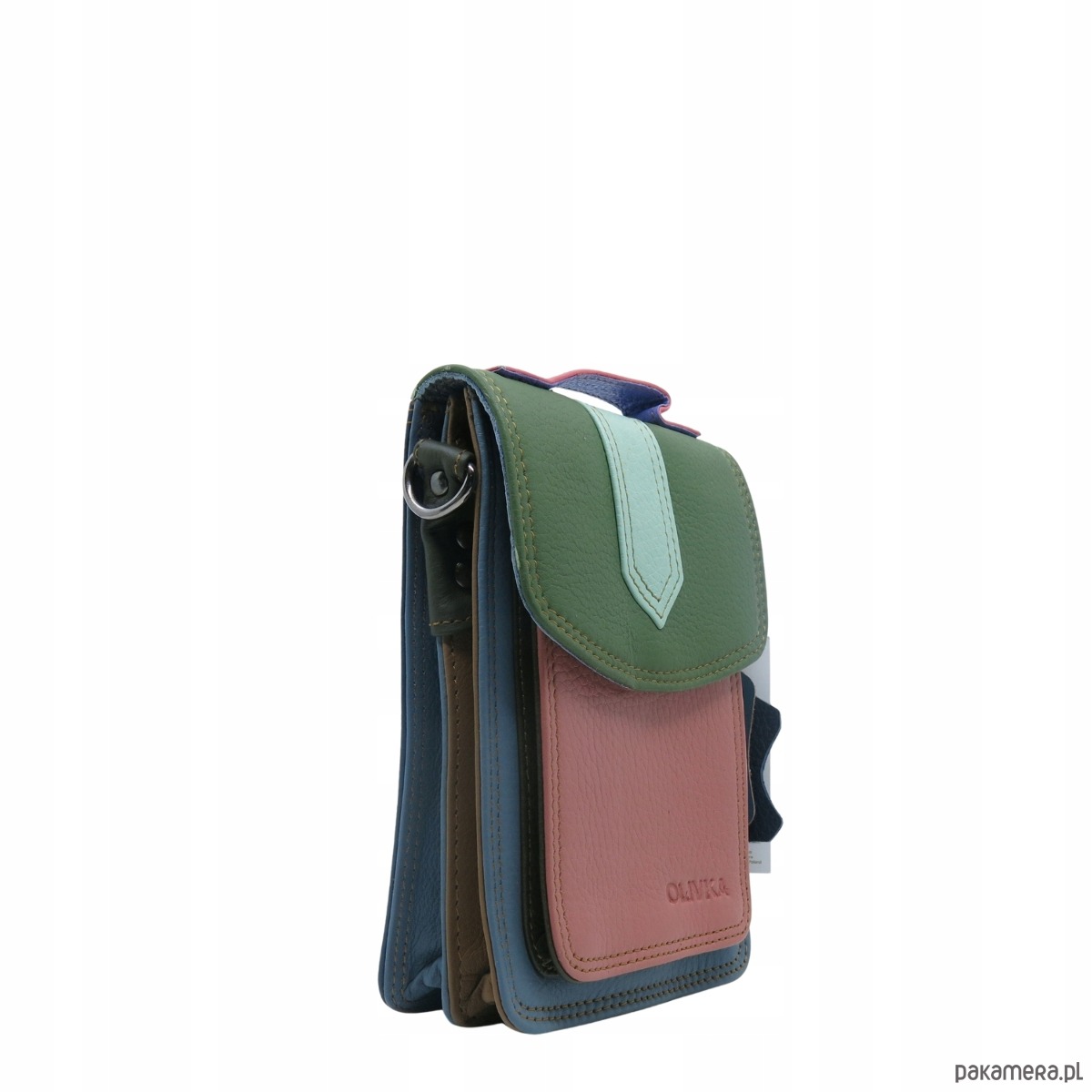 Torebka na telefon skórzana damska listonoszka z rączka i szlufką OLIVKA