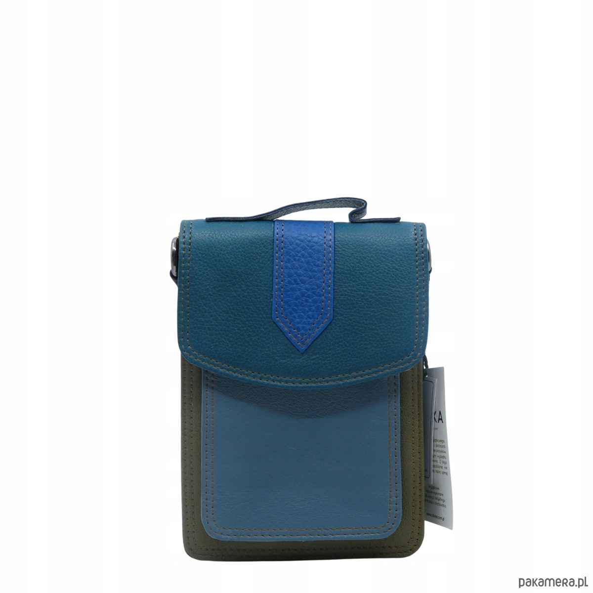 Torebka na telefon skórzana damska listonoszka z rączka i szlufką OLIVKA