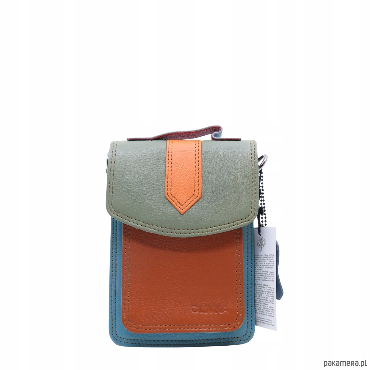 Torebka na telefon skórzana damska listonoszka z rączka i szlufką OLIVKA