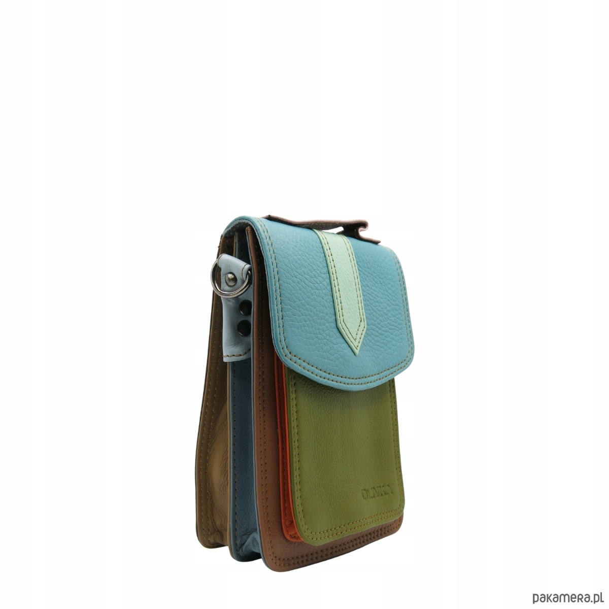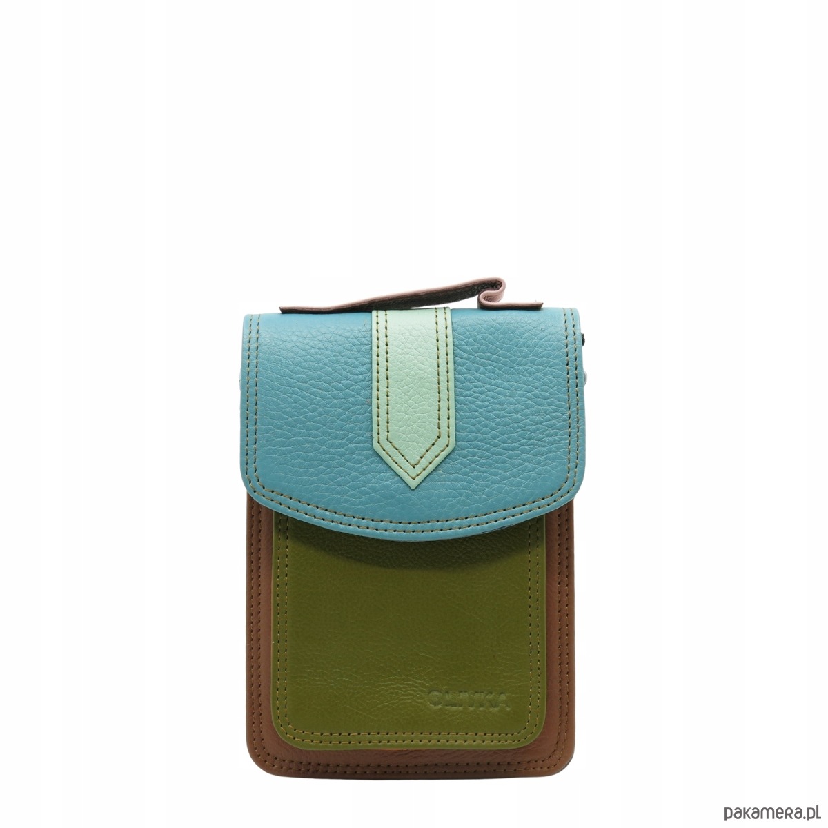 Torebka na telefon skórzana damska z listonoszka rączka na pasek OLIVKA