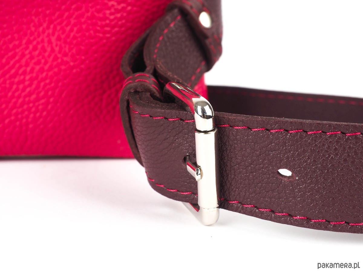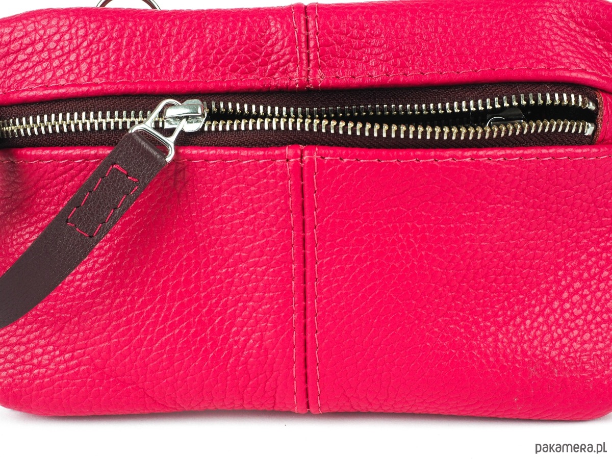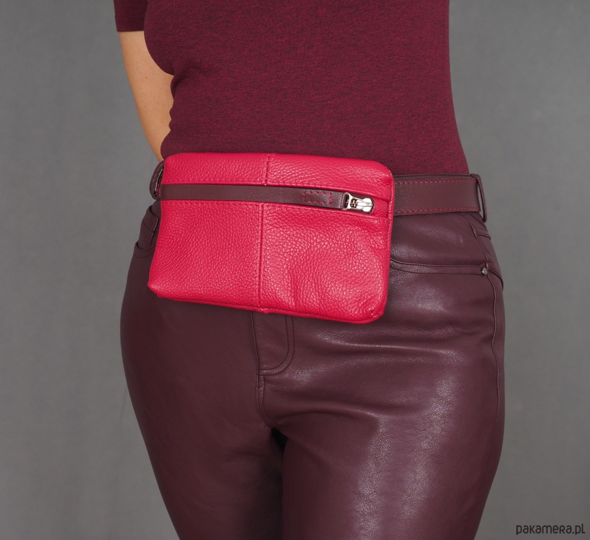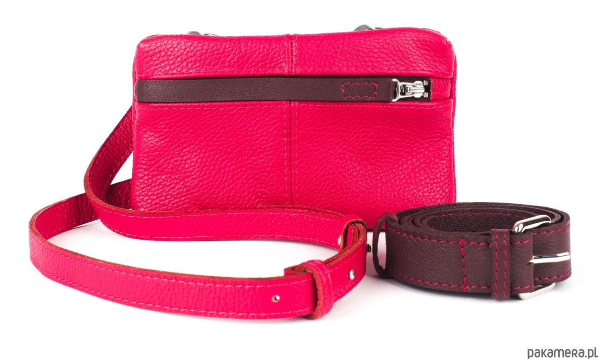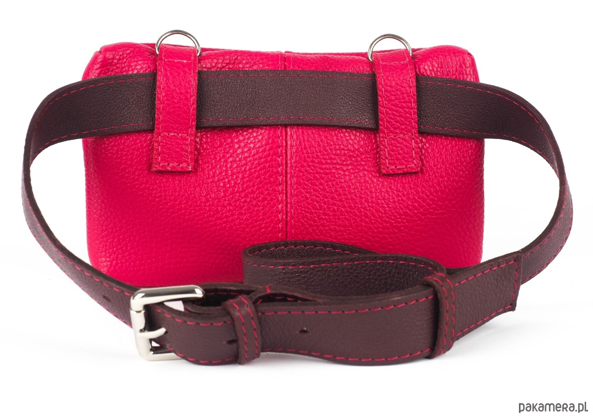 Torebka wykonana z naturalnej skóry. Podszewka w kolorze czerwonym. Pełni dwie funkcje. Można ją nosić jako małą klasyczną torebkę lub jak wolicie jako biodrówkę (nerkę), w tym celu wyposażona jest w pasek zapinany na klamrę jak klasyczny pasek do spodni. Można również wypiąć pasek i albo nosić ją jako mini kopertówkę, albo dopinając drugi pasek – nosić ją przez ramię. Idealna na wyjazdy, wyprawy rowerowe lub na wieczór. Zmieści portfel, telefon, klucze, pilot do garażu czy bramy. Torebka za swoją uniwersalność stanowi hit sezonu i jest fantastycznym dodatkiem dla kobiet ceniących praktyczne rozwiązania.