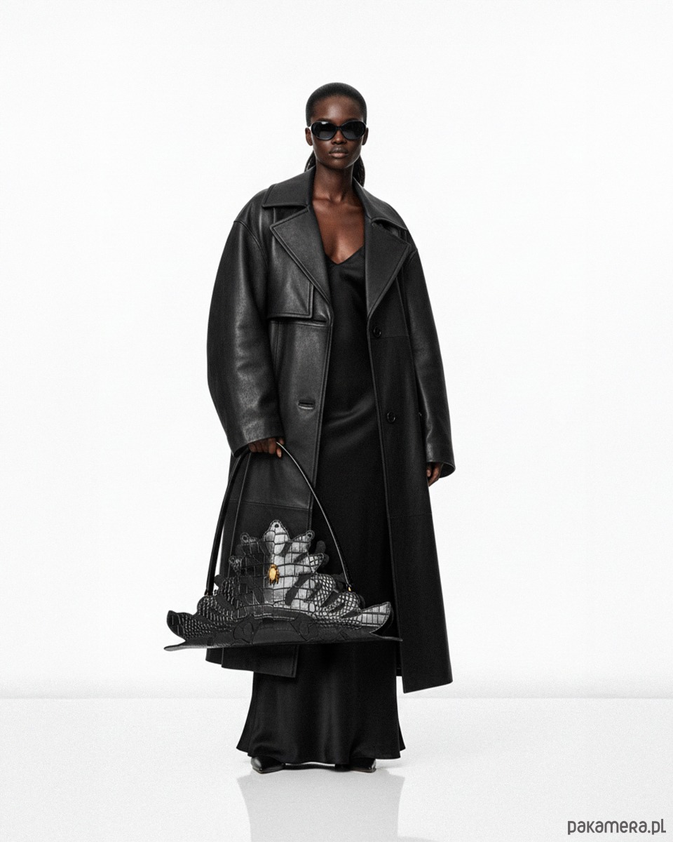 Torebka wykonana z najwyższej jakości naturalnej skóry z fakturą krokodyla, o unikalnym, rzeźbiarskim kształcie opartym na szablonie artystki NeSpoon. Jej sylwetka, jednocześnie wyrazista i elegancka, stanowi harmonijne połączenie artystycznej formy z funkcjonalnym projektem.