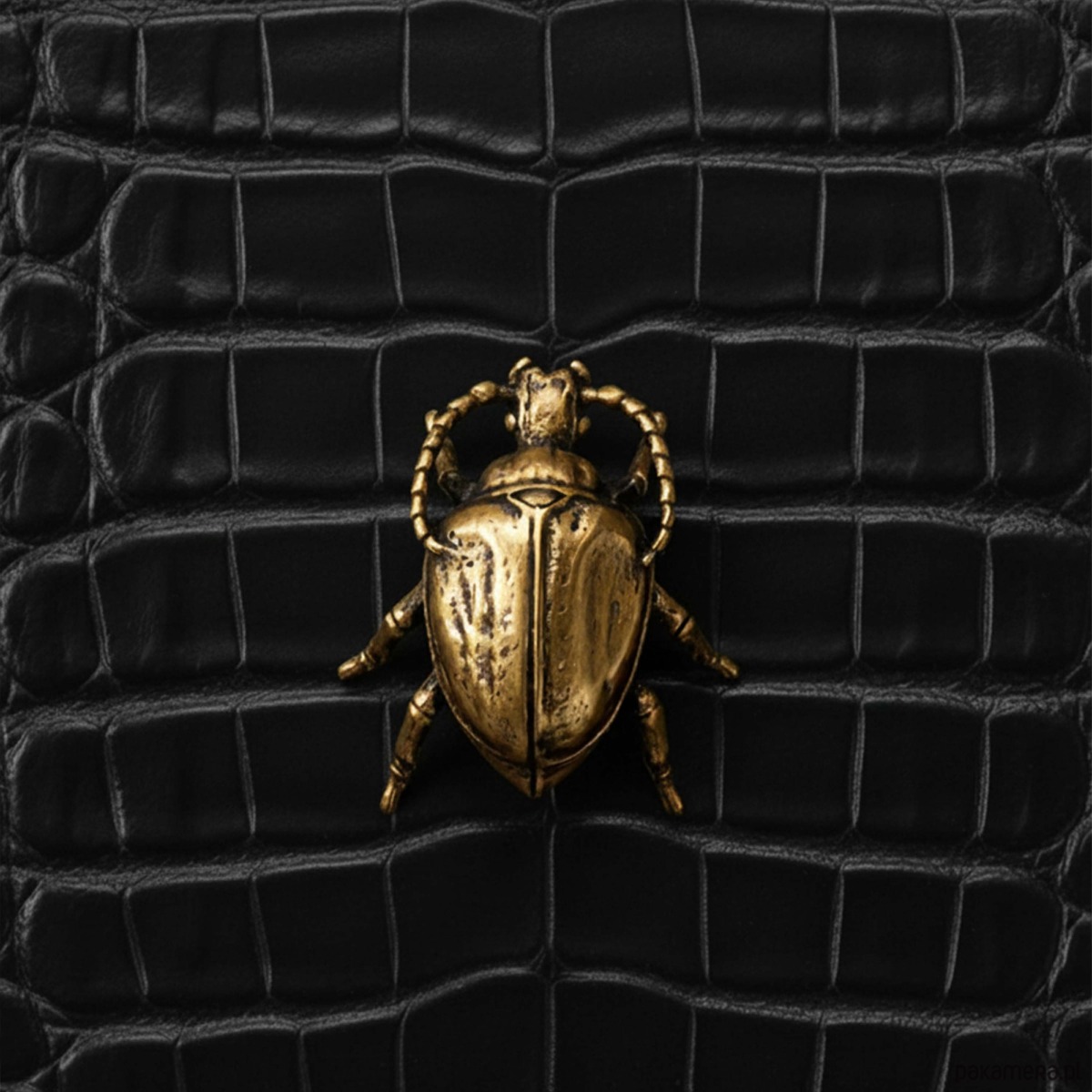 Centralnym elementem modelu jest skarabeusz, precyzyjnie wykonany tradycyjnymi technikami metaloplastycznymi – pełni on rolę zarówno ozdobną, jak i symboliczną, podkreślając kunszt i wyjątkowy charakter projektu.