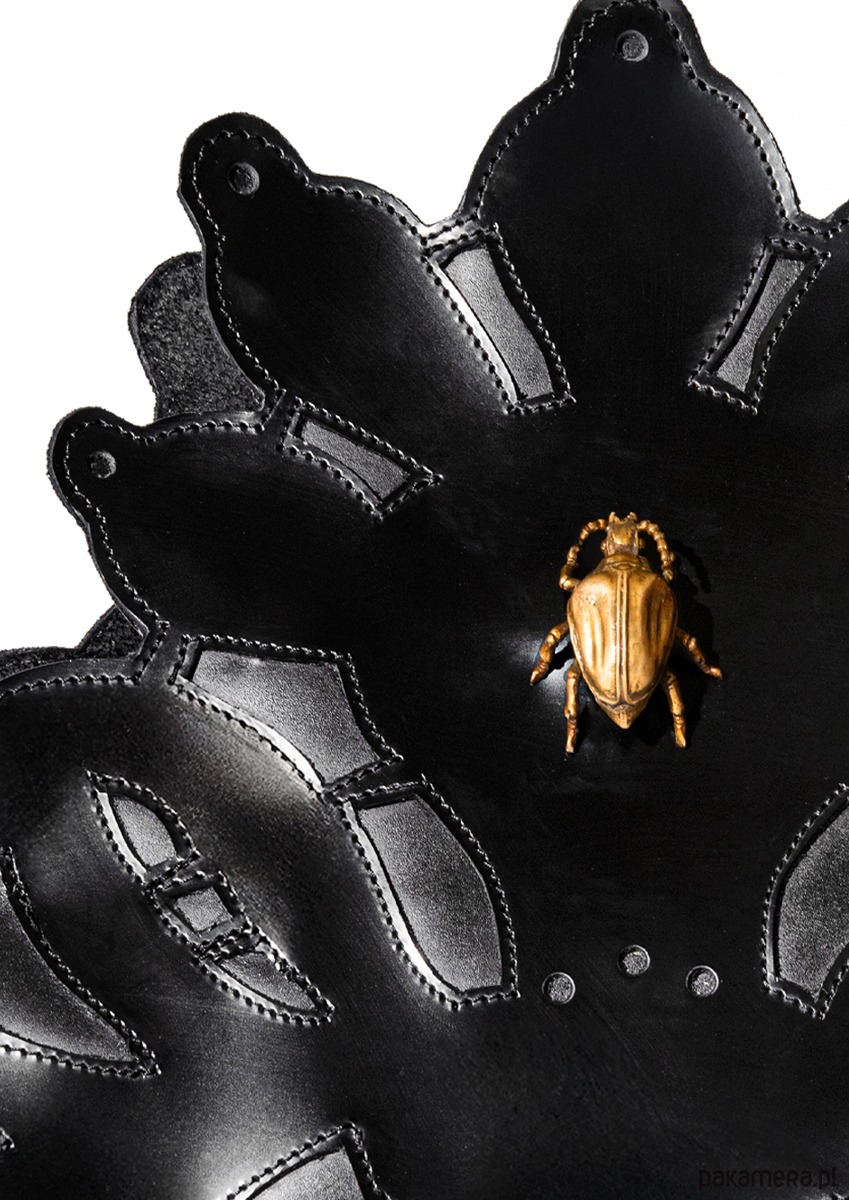 Centralnym elementem modelu jest skarabeusz, precyzyjnie wykonany tradycyjnymi technikami metaloplastycznymi – pełni on rolę zarówno ozdobną, jak i symboliczną, podkreślając kunszt i wyjątkowy charakter projektu.
