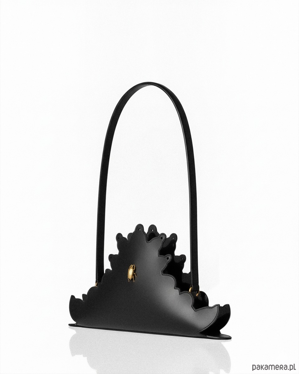 Torebka wykonana z najwyższej jakości naturalnej skóry, o unikalnym, rzeźbiarskim kształcie opartym na szablonie artystki NeSpoon. Jej sylwetka, jednocześnie wyrazista i elegancka, stanowi harmonijne połączenie artystycznej formy z funkcjonalnym projektem.