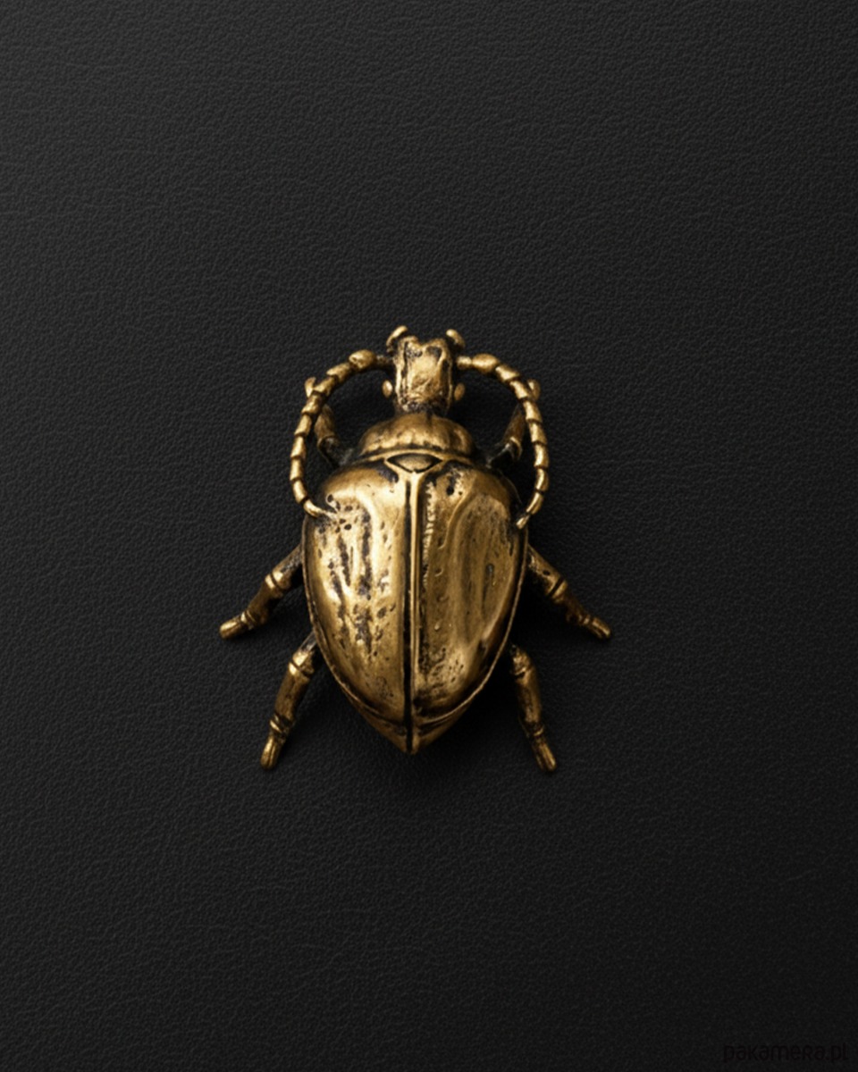 Centralnym elementem modelu jest skarabeusz, precyzyjnie wykonany tradycyjnymi technikami metaloplastycznymi – pełni on rolę zarówno ozdobną, jak i symboliczną, podkreślając kunszt i wyjątkowy charakter projektu.